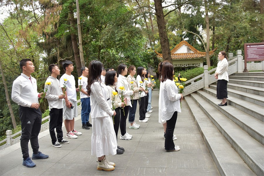 下午,全体人员来到青秀山广西学生军抗日烈士纪念碑,聆听广西学生军的英勇故事,缅怀革命先烈的丰功伟绩。现场,全体党员干部怀着崇敬的心情向革命烈士纪念碑三鞠躬,并向革命烈士敬献鲜花。