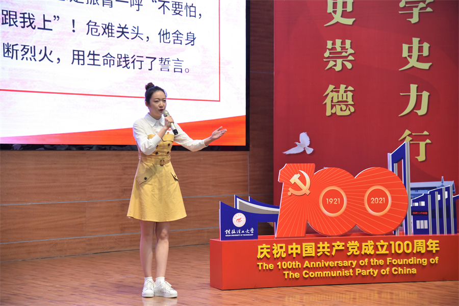 决赛中,在背景画面和音乐的氛围烘托下,张菲菲同学向现场的评委和师生讲述了献身国防金质奖章获得者、北海烈士骆春伟的感人事迹,深入挖掘整理骆春伟事迹中教育人、鼓舞人的精神力量,用生动且极富感染力的语言,娓娓道来,赢得了在场评委的肯定和观众的阵阵掌声,体现了我校学子对红色经典文化的深入理解和良好传承。