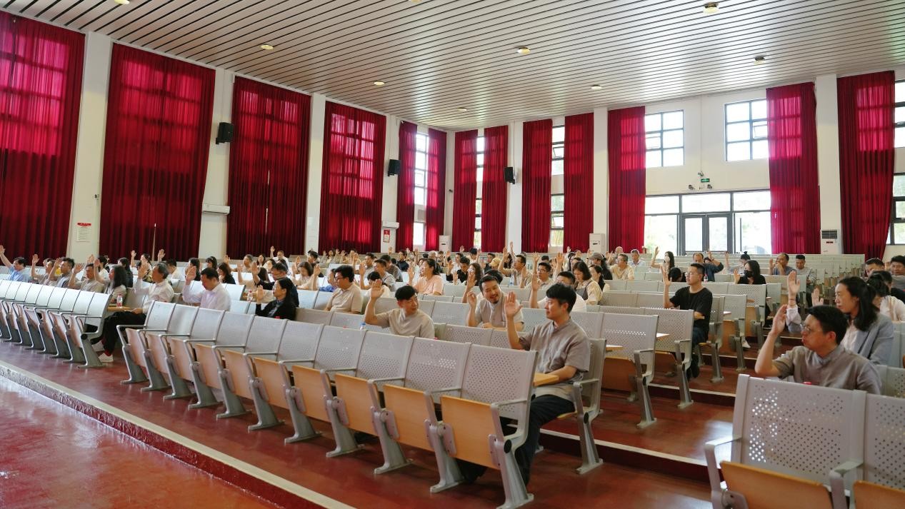 在分组讨论环节,各代表成员围绕三大报告及学校发展各抒己见,积极建言献策,充分体现了教职工对学校发展的高度关注和主人翁责任感。校领导深入各代表团听取意见,现场回应关切。会议表决阶段,会议三项报告及相关决议均获全票通过。