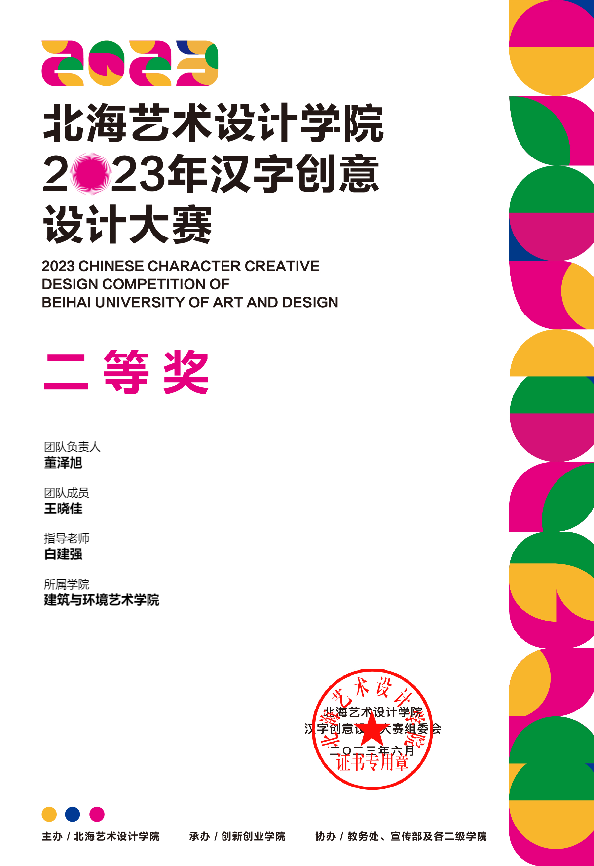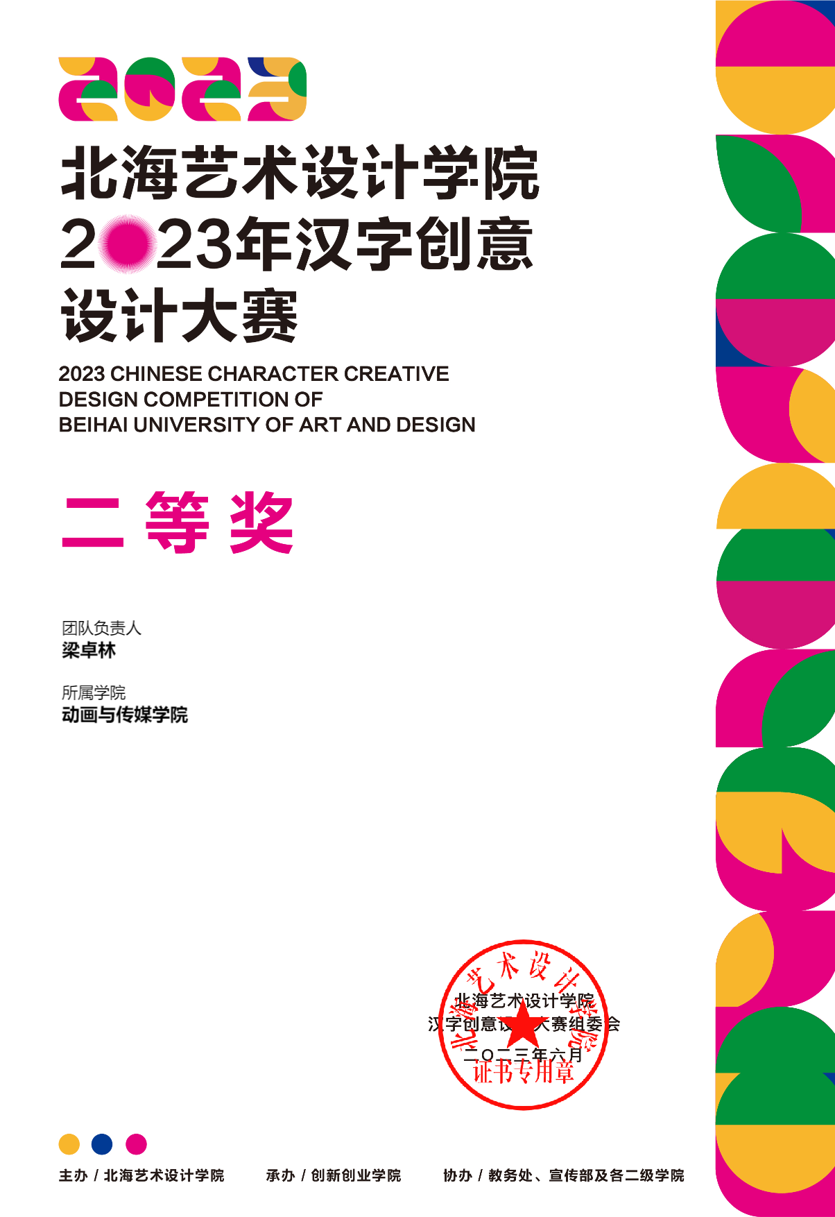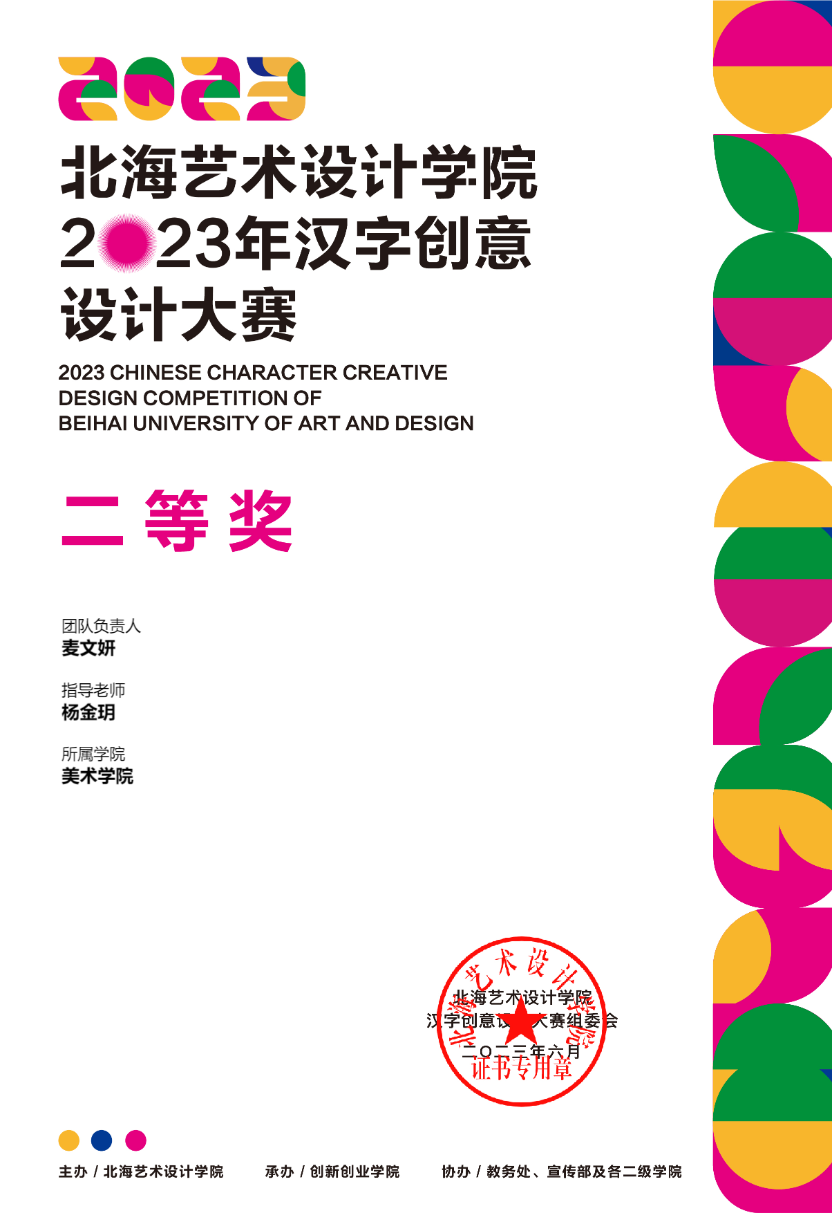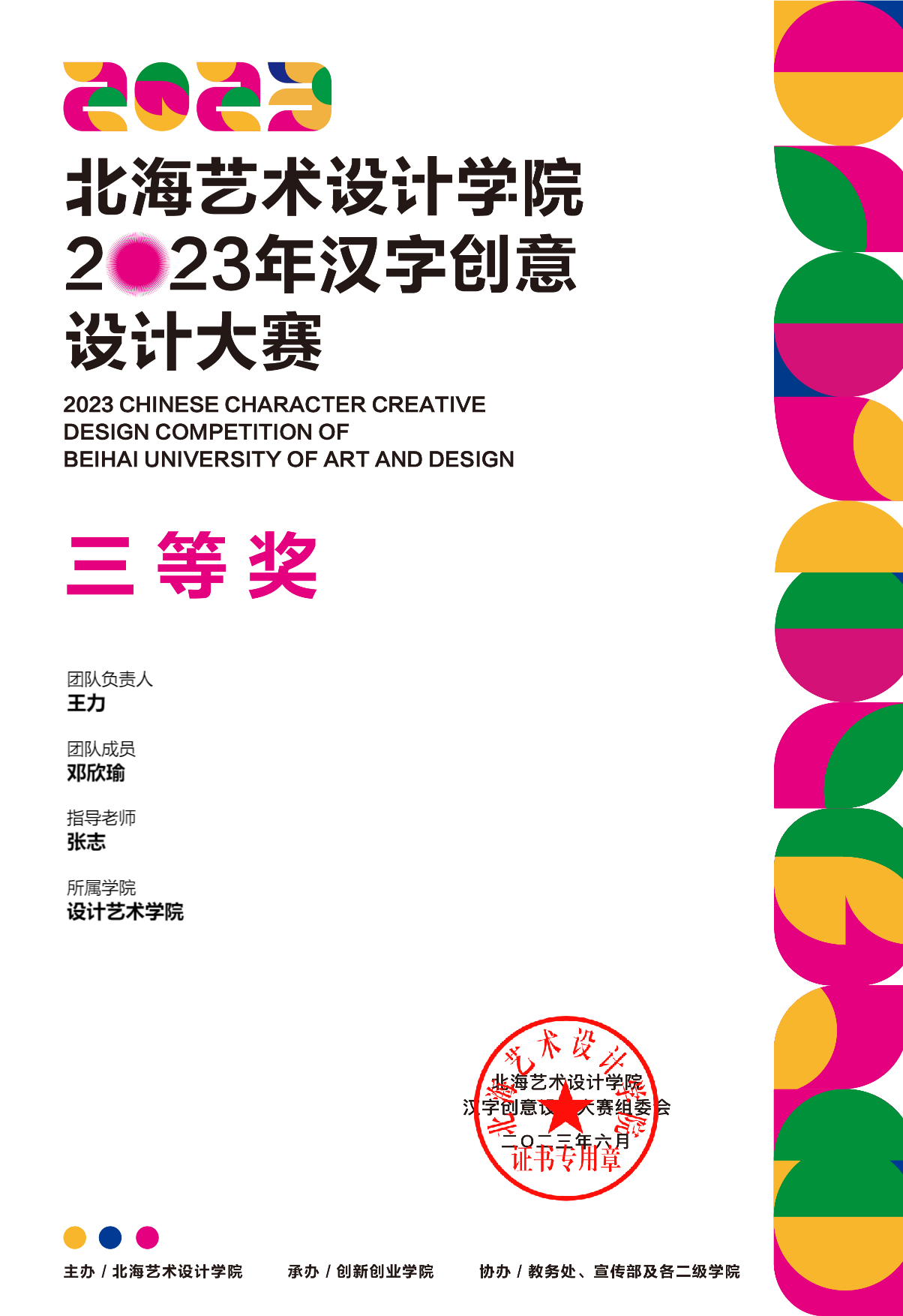 2023年汉字创意设计大赛等级奖证书
