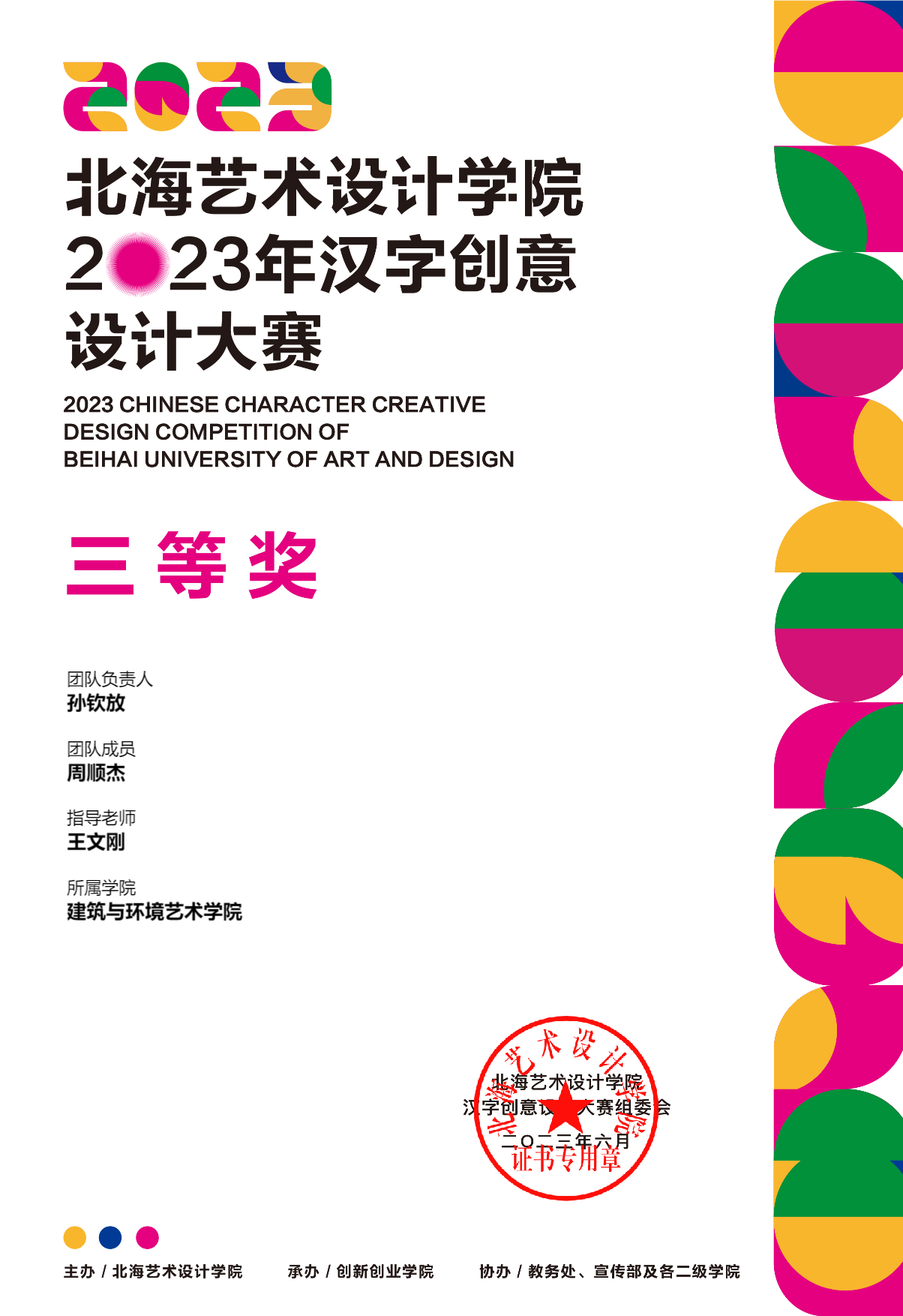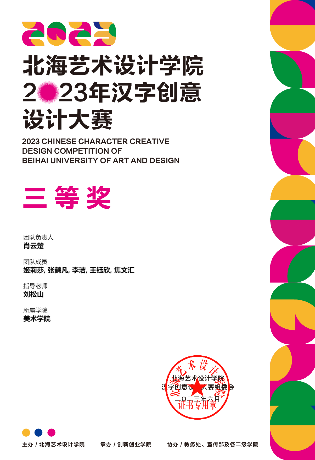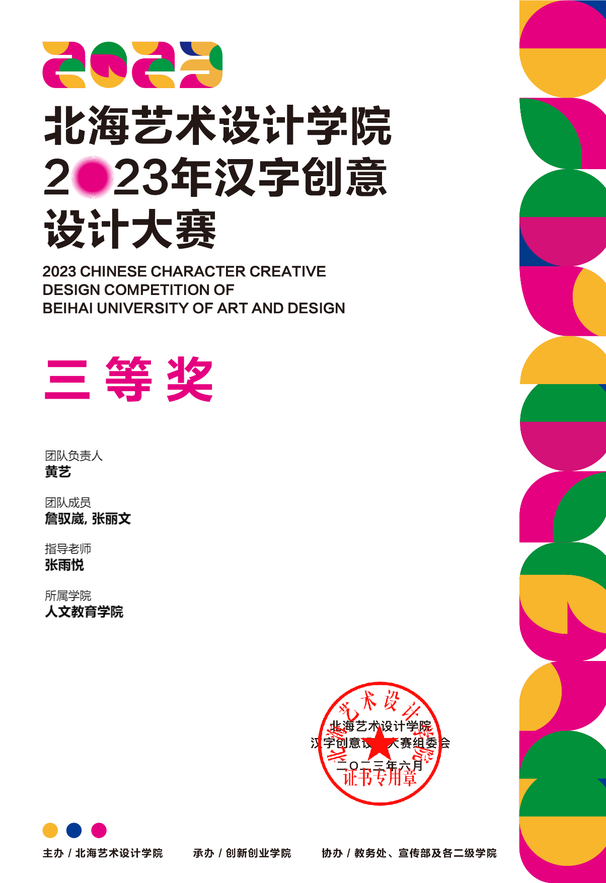 2023年汉字创意设计大赛等级奖证书