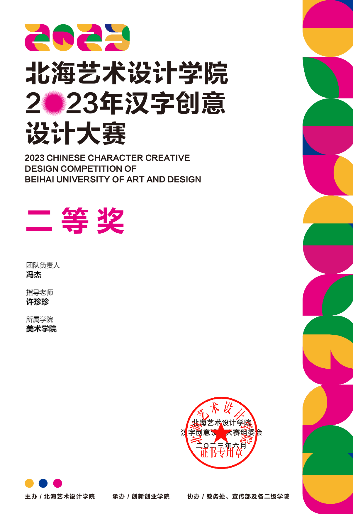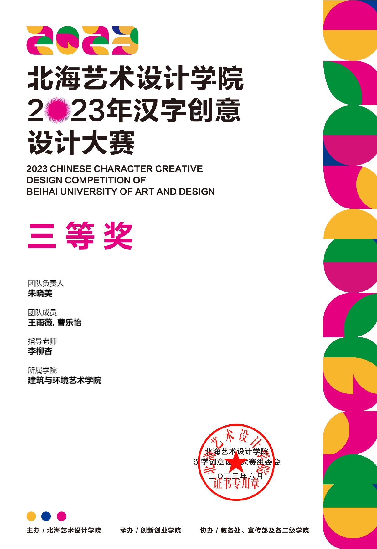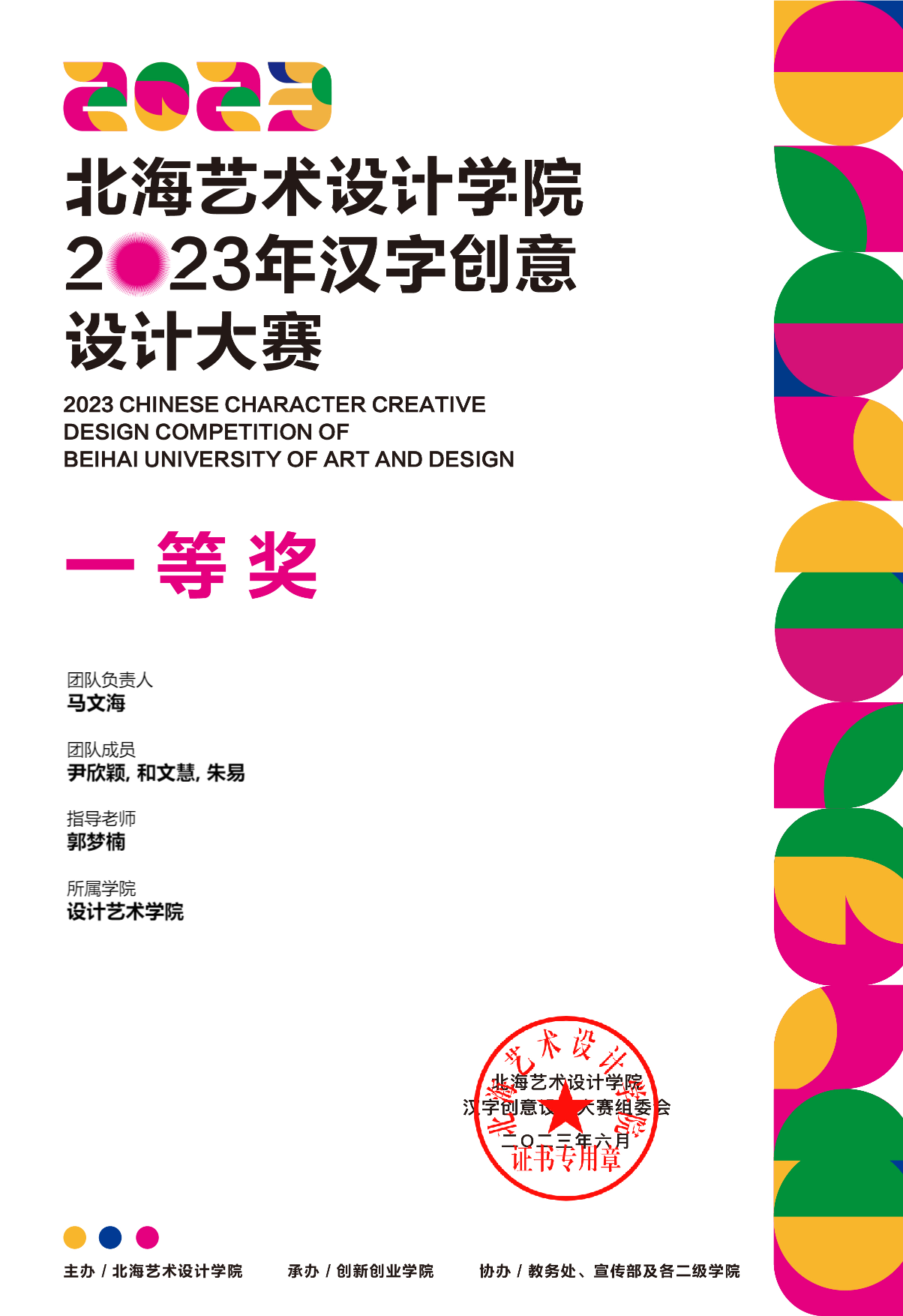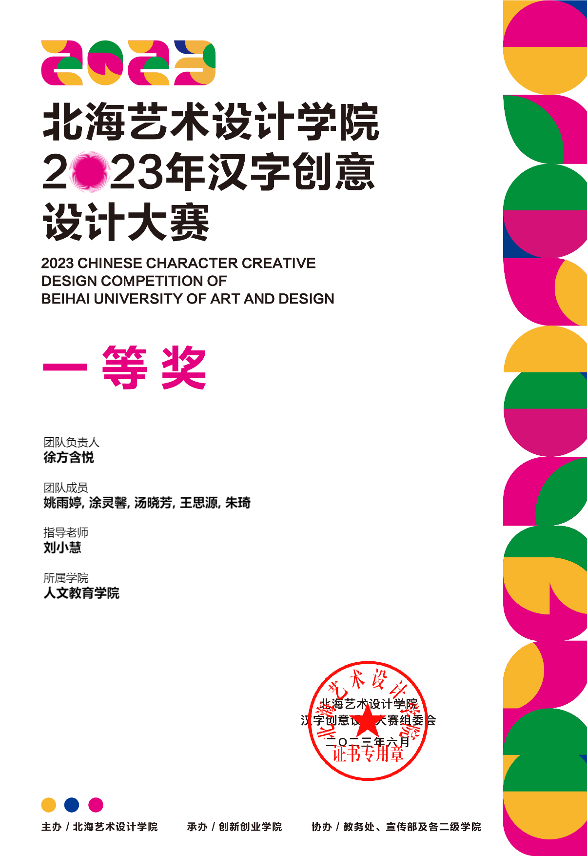 2023年汉字创意设计大赛等级奖证书