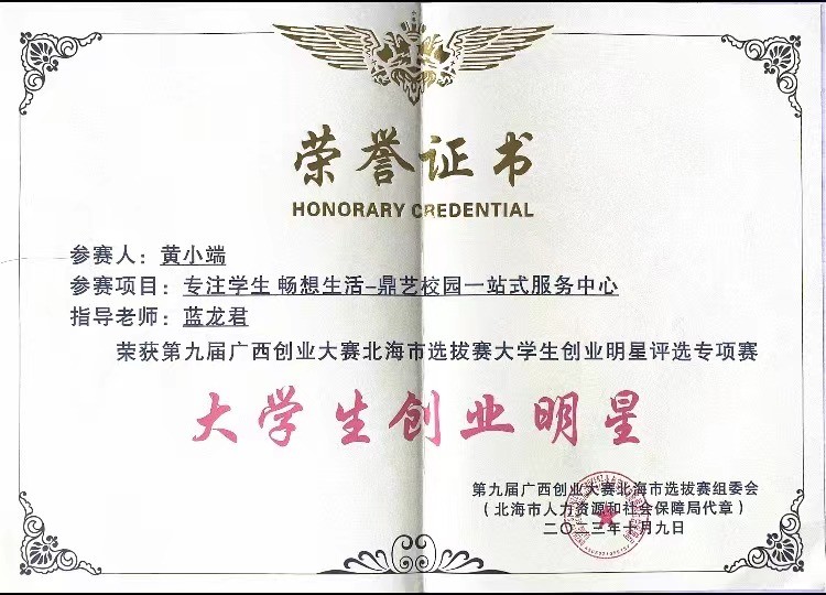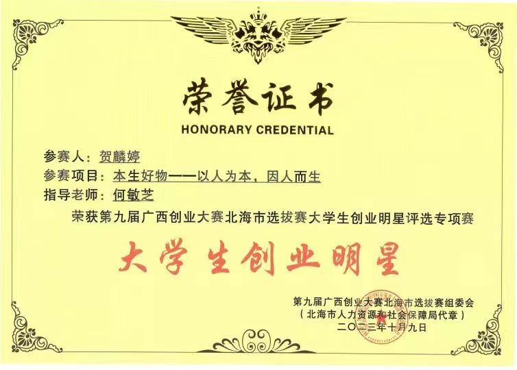 第九届广西创业大赛北海市选拔赛大学生创业明星评选专项赛