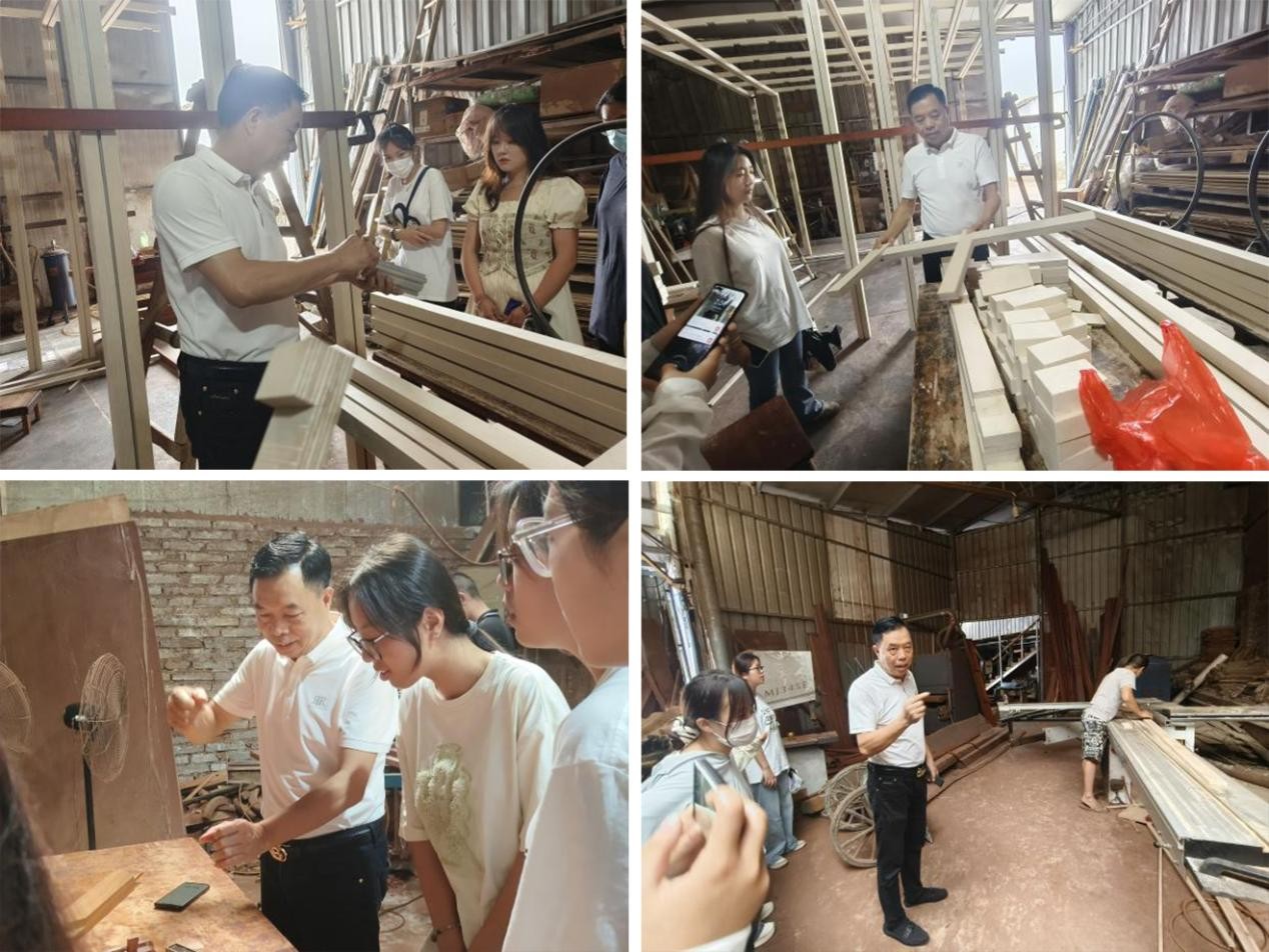 在调研过程中,师生们首先参观了世轩潮的生产车间,目睹了家具从原材料到成品的整个制作过程。在这里,他们看到了工人们精湛的技艺和严谨的工作态度,也深刻体会到了设计与实践的紧密结合。