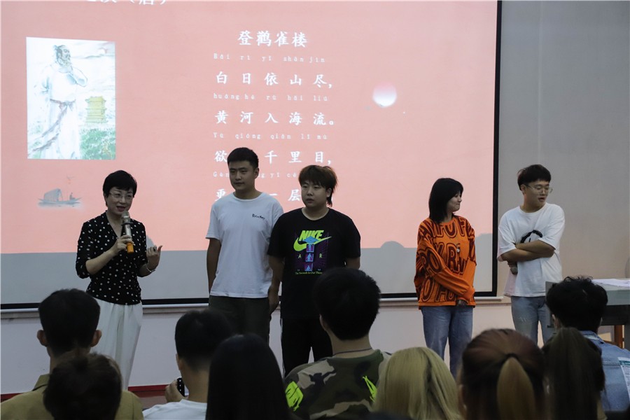 在讲座最后,周游教授再次请同学们上台朗诵诗歌,通过同学们的朗诵,他表示同学们应该对诗歌有属于自己了解,多诵读诗歌,营造诗歌的情感和画面感,将情感炼入诗歌中,最终呈现出满富情感的诗歌,希望同学们都能感受朗诵的魅力。