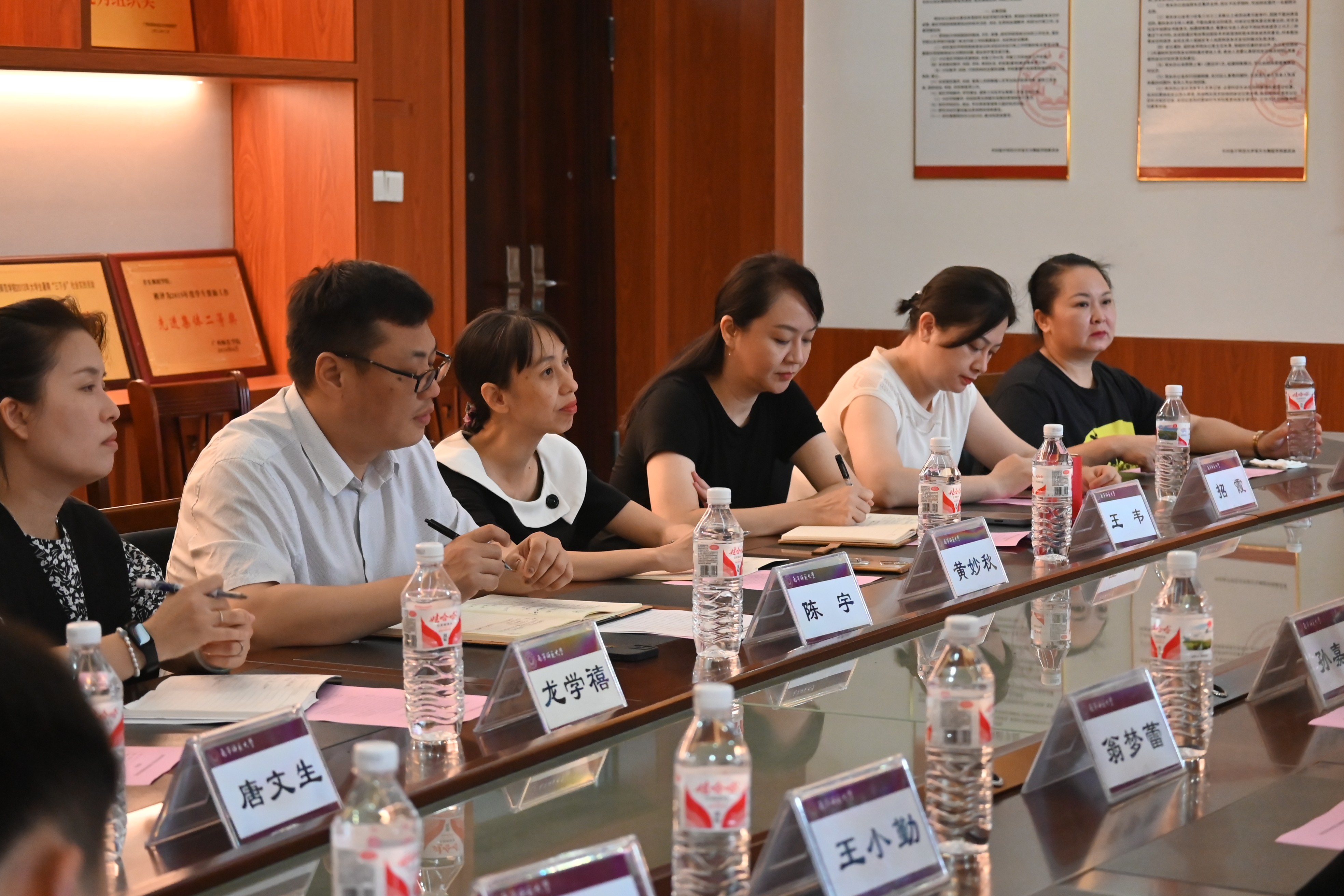 在参观结束后,双方进行交流座谈。陈宇书记代表南宁师范大学音乐与舞蹈学院对我院一行的到访表示热烈欢迎。黄妙秋院长为我院考察团详细介绍了南宁师范大学音乐与舞蹈学院发展历程、师资队伍、专业建设等方面的情况,以及办学特色探索举措和教学成果。随后双方围绕音乐教育专业建设发展、舞蹈专业人才培养、学生见习实习研习及当前专业发展所遇到的瓶颈问题进行了深入探讨。