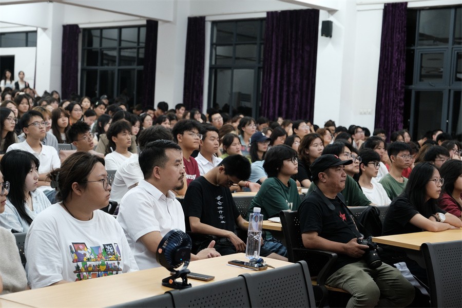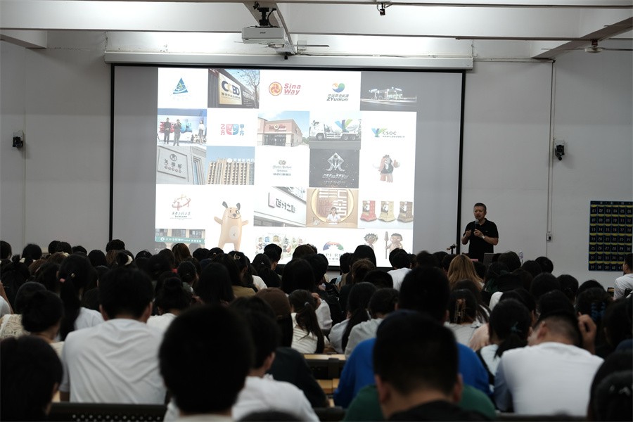 陈栋教授还通过其自身的各种工作经验,向现场师生传授了在实际工作岗位上应对设计任务的有效做法。他表示,面对甲方顾客或公司的时候要学会投其所好,尽量满足要求,他强调在创作设计时,要做到降材升质,才能实现市场价值。当面对甲方顾客不同的喜好时,如何选择和取舍设计,需要在工作时认真考量,而更为重要的是要在平时注重积累素材,才能在创作时应对自如。为此,他表示读书、游历、分享这三者是成为优秀设计师的重要条件,而设计最让人着迷的在于:解析常态、探寻未知;拓展自己知识的边界,远离已知的舒适区。他鼓励同学们要做到在创业时体味感悟,于工作之外修炼内功。
