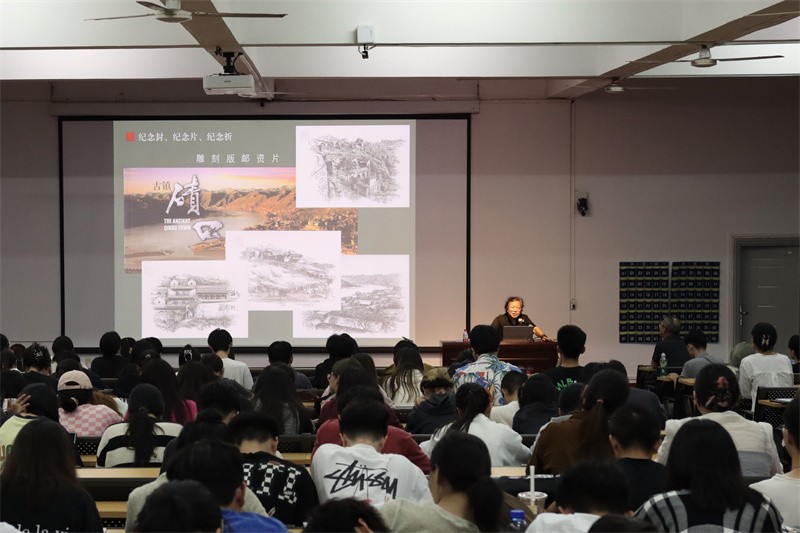 讲座伊始,阎炳武教授用专业性语言介绍邮票中传世的永恒智慧,展现了邮票与先贤思想、时间文化、吉祥文化、古今书画的融合。他表示,从事于邮票设计、雕刻工作,需博采众长、不断吸取历史各朝名家的画法,并运用各种技法来表现画作,才能为邮票注入传统文化非凡魅力。阎炳武教授还进一步引导广大师生对邮票技术发展的深思,促进运用古今中外留下的超前技术,来推动邮票行业不断向前发展。