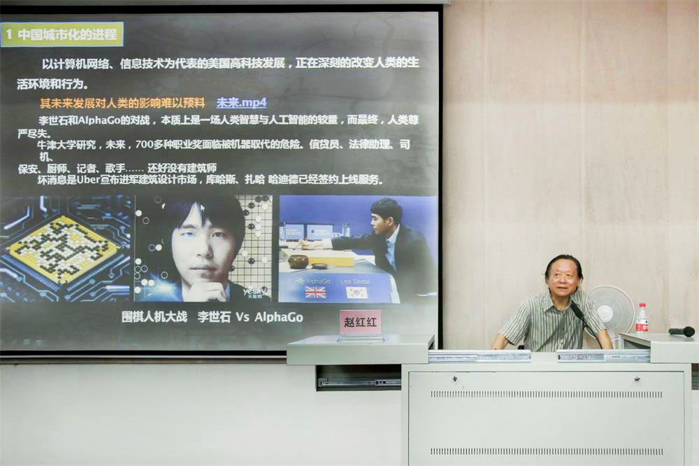 赵红红教授从中国城市化的进程、经济全球化的影响、东方人居思想、本土化的设计潮流、地域化的设计创新五个方面进行分析探讨,给在座师生展示了许多经典的案例,并就如何对本土文化进行传承和创新进行了诠释,提出了独到的观点和看法。在讲座中,赵教授指出现代建筑设计的不足,即设计缺乏创新,千城一面、千楼一面的现象层出不穷。同时赵教授通过广州南昆山十字水生态度假村细讲解了地域化建筑设计的特征,向我们阐述了现代建筑设计的发展方向,即在传承传统文化的基础上加以创新深化,融入现代化设计的元素。在最后,赵教授激励中国的建筑师要为走向世界做理论准备,给我院学生树立了新的奋斗目标。