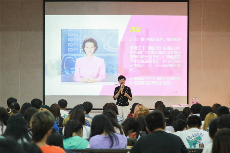 名师大讲堂||原广西电视台播音员主持人管理委员会秘书长周游教授为我校师生开展讲座