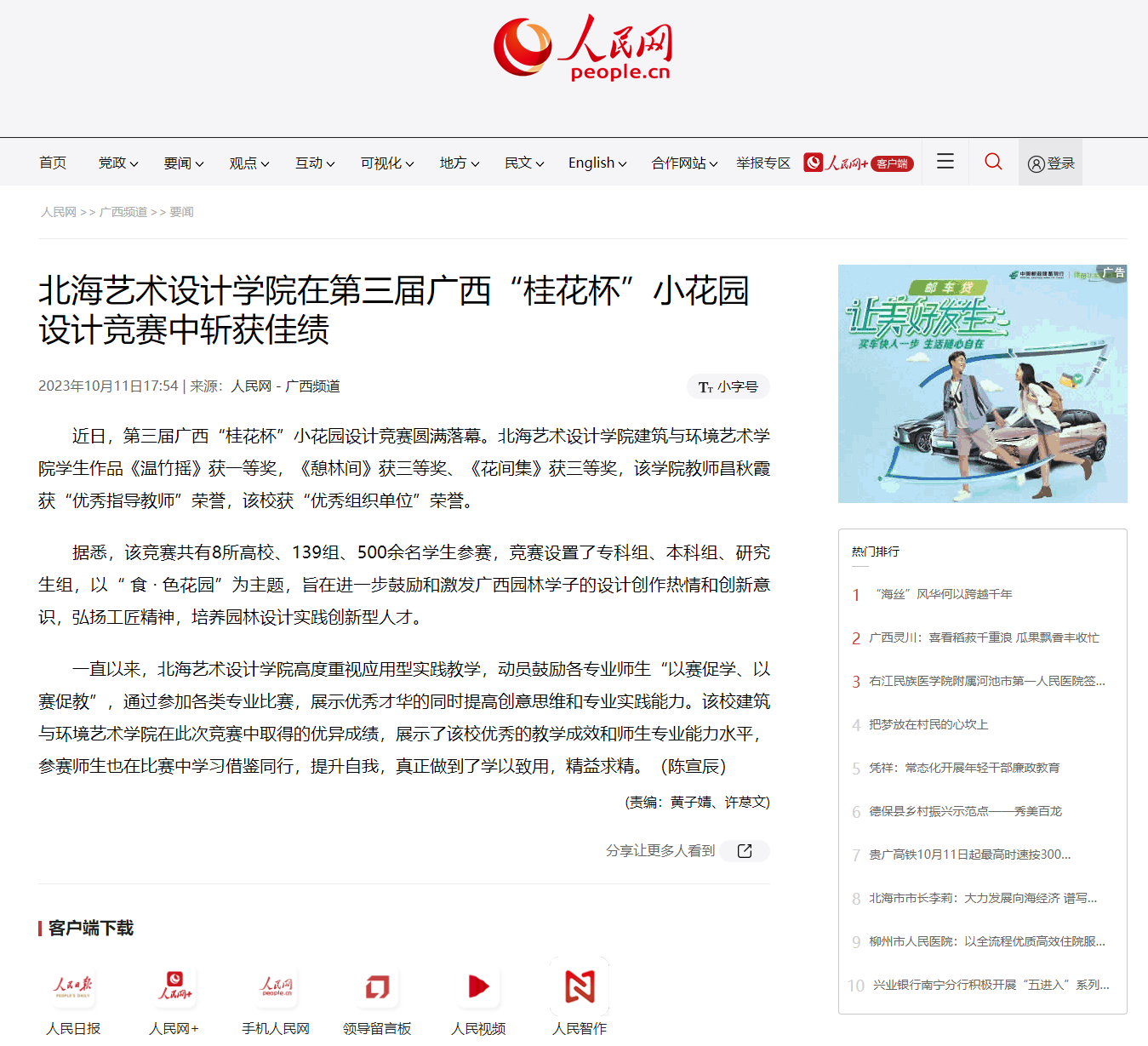 人民网:北海艺术设计学院在第三届广西“桂花杯”小花园设计竞赛中斩获佳绩
