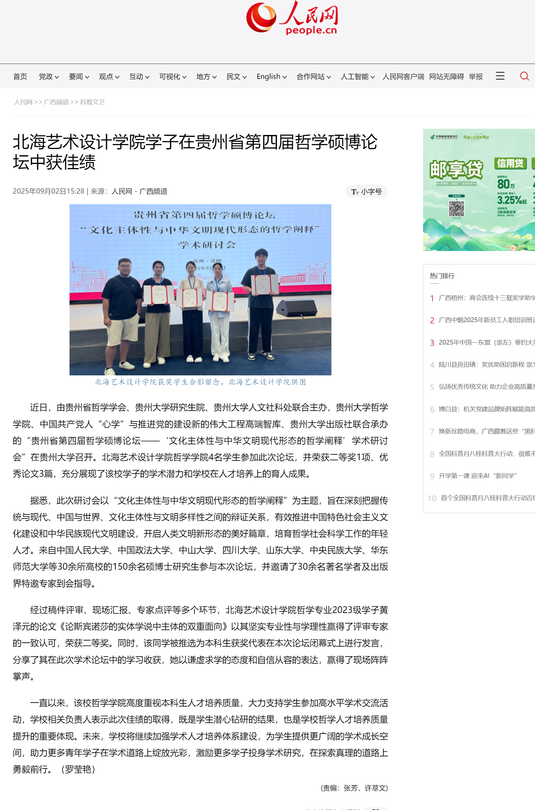 人民网:北海艺术设计学院学子在贵州省第四届哲学硕博论坛中获佳绩