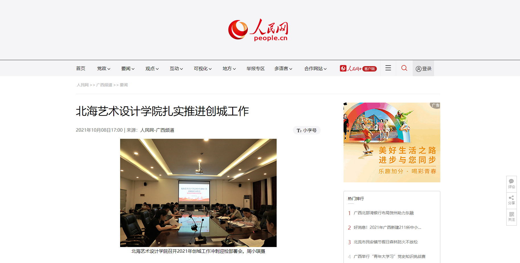 人民网:北海艺术设计学院扎实推进创城工作