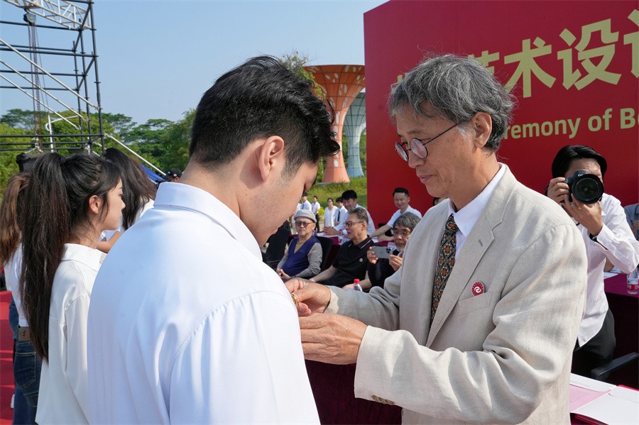 典礼上,学校领导及教师代表为新生代表佩戴北海艺术设计学院校徽。小小的校徽,见证学校的一路成长,也饱含对新生的殷切期望,鼓励着大家提高艺术观察力和捕捉敏锐力,期待广大学子拥有广阔的视野,将永恒、光明、繁盛、温暖和希望接续传递。同学们胸佩校徽,融入北艺血脉,赓续北艺传统,共享北艺荣光。
