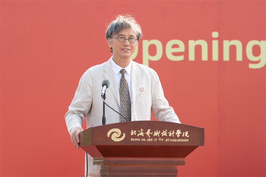 10月11日,我校2024年新生开学典礼在园博园校区蓝天白云广场举行。北海市人民政府副秘书长、北海市人民政府办公室副主任蒲笛春;北海市教育局党组成员、副局长徐广辉;清华大学学术委员会副主任、博士生导师,原中国服装设计师协会主席,原清华大学美术学院党委书记、院长,北海艺术设计学院顾问委员会副主任李当岐;英国切斯特大学国际事务副校长兼艺术、人文与社会科学学院执行院长大卫·麦格拉维;日本武蔵野美术大学教授,日本著名生成AI人工智能设计师、舞台映像艺术设计师,中国中央电视台特邀艺术顾问大野一興;日本文化学园大学教授、日本色彩学会会员、北海艺术设计学院特聘教授田森恭子;日本著名平面设计师、创意总监兼艺术总监太田弘之;国家一级导演、著名编导、北海艺术设计学院舞蹈学院院长吴明奇;二级演员、北海艺术设计学院舞蹈学院副院长任家和;日中美术文化交流协会理事、北海艺术设计学院特聘教授尤海明;北海银滩开发投资股份有限公司总经理詹海松、副总经理关键;北海园博园资产管理有限公司副总经理苏小丹;学校党委书记覃宪儒,校长卢新华,常务副校长胡胜,党委副书记陈毅华、彭仁、刘承初,副校长邱杰、陶立阳、黄侃明、刘朝雄、包建明、何煜,总督学王斌,学校纪委书记王照伟等出席典礼,有关职能部门负责人、各二级学院负责人、教师代表和2024级3700多名新生参加典礼。典礼由学校党委书记覃宪儒主持。