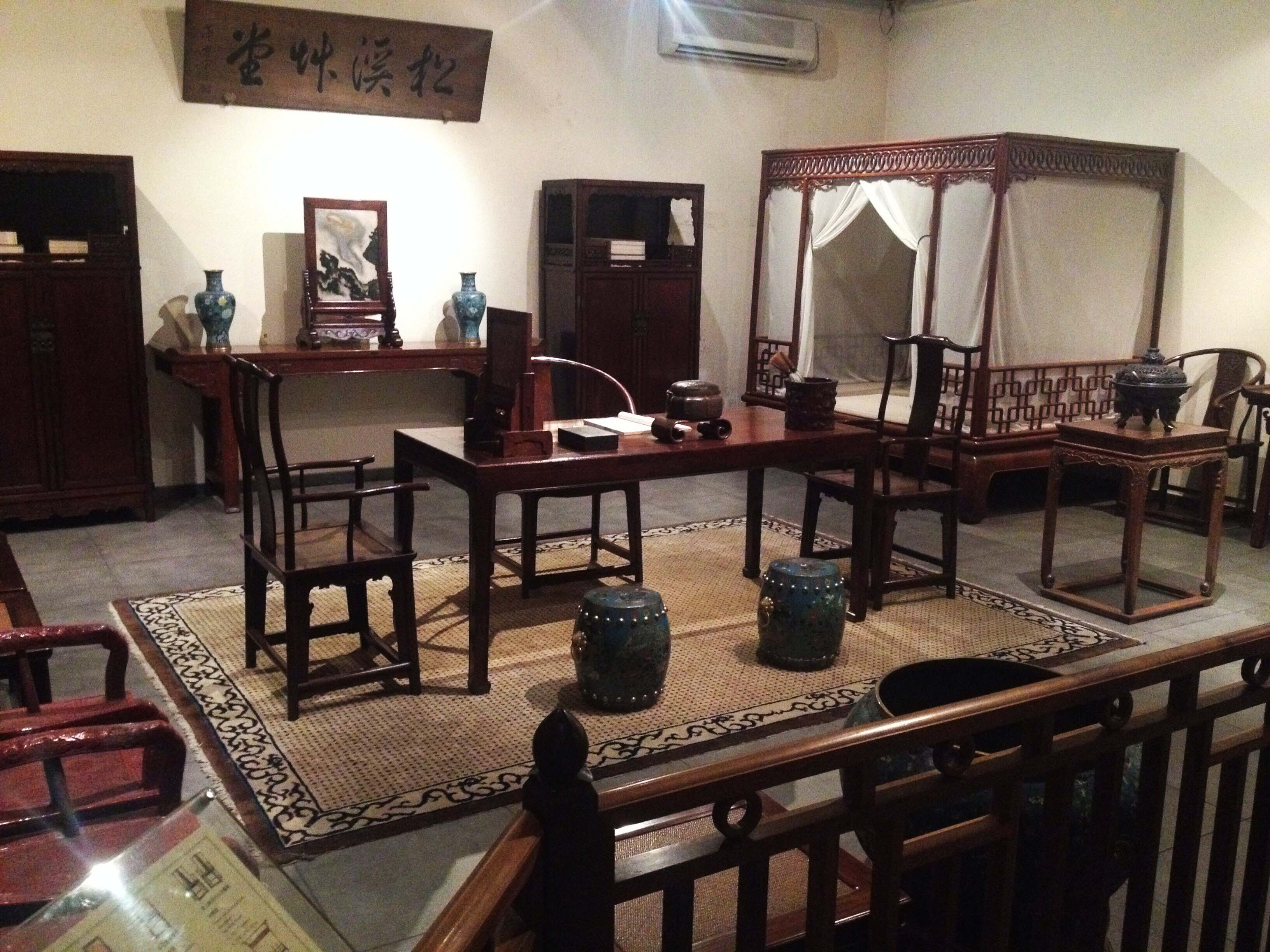 家具馆里陈列了中式家具,每件家具再配以当时的摆置形式,一个活生生的历史场景就呈现在眼前,行走其中,竟有穿越古今之感。明朝家具的典雅,清朝家具的华丽,一览无余。