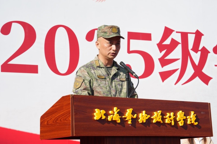 北海市海城区人民武装部部长薛建伦在讲话中阐明了军训的重要意义,并对全体参训学生提出希望:一是心怀远大抱负,争做有责任、有担当的新时代青年。二是发扬从军尚武精神,通过艰苦训练培养顽强作风、拼搏意识和战胜自我的勇气,勇往直前。三是以军队标准严守纪律,敬畏校规校纪与法律法规,争当德智体美劳全面发展的优秀青年。同时,他向军训教官提出要求:加强自身管理,以过硬军事素质带领学生,加强与教师沟通,坚持科学训练、劳逸结合,确保军训安全有序、顺利推进。