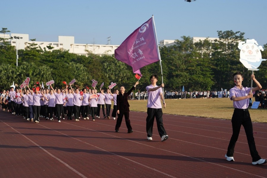 在激昂的运动会开幕氛围中,由舞蹈学院、设计艺术学院、影视动画学院、美术学院、服装学院与文学院师生联袂演绎、汇聚多学科艺术力量的大型歌舞《永不言败》惊艳登场,成为全场焦点。节目以“永不言败”的体育精神为内核,舞动青春绚丽色彩,蹈出生命无限可能,唱响青春华章,将不同学院的专业特色巧妙融合,呈现出一场兼具视觉冲击力与精神感染力的艺术盛宴。