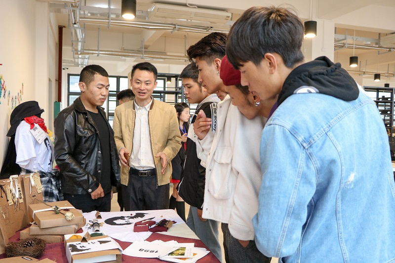 座谈会后,郑超副院长带领藏族班的同学观赏了设计学院包装设计作品展,同学们被精彩绝伦的包装设计所吸引,认真的观看作品展,参观过程也提出了自己的见解和看法。