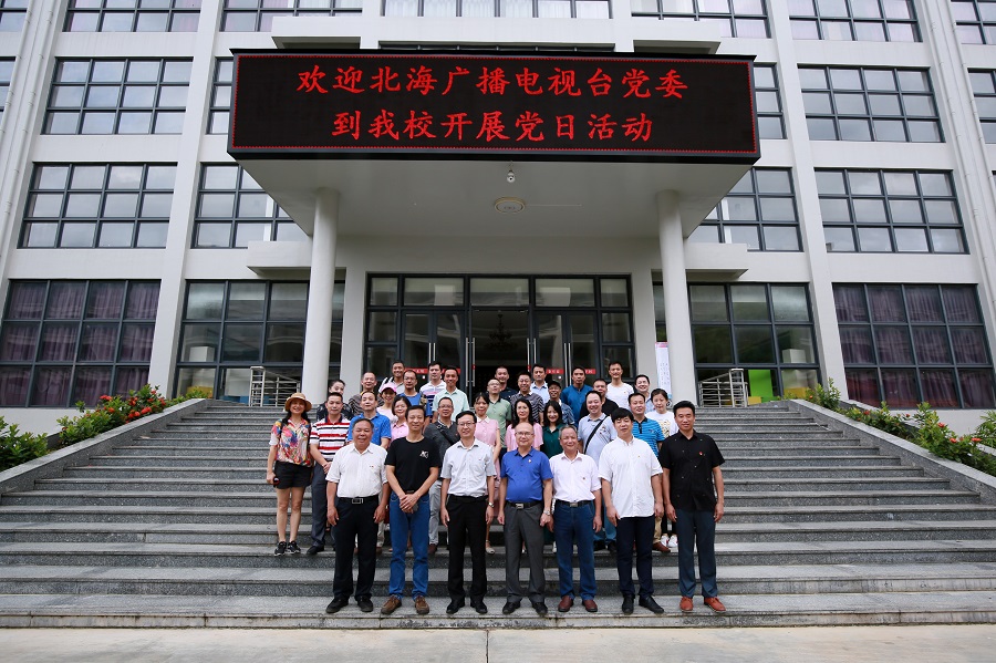 2019年7月3日下午,我校党委与北海广播电视台党委共同开展了“不忘初心 牢记使命”主题党日活动暨党建共建交流活动,双方党委共50多名党员参加了活动。