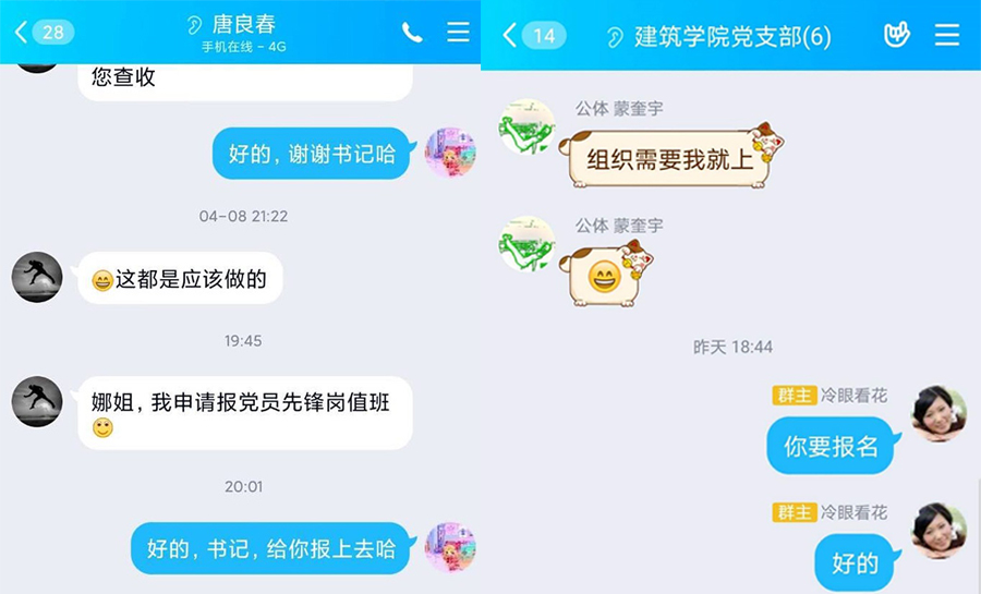 针对开学后应对学生突发情况的任务越来越重,党委向各党支部发出征集党员突击队员的号召,通知一经发出得到了党员教师的积极响应。建筑学院党支部蒙奎宇:“只要党组织需要,我就上。” 机关第二党支部张琪:“我报名突击队,帮他们分担分担,看他们每天挺累的。”机关第一党支部文娇丽:“有需要,我可以去。”打赢校园疫情防控保卫战,党员教师用行动书写师者情怀,用担当履行入党誓言。