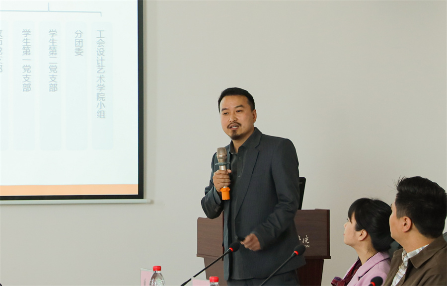 设计艺术学院院长李林平首先对百色学院美术与设计学院一行的到来表示热烈欢迎,并对其在大广赛等多方面获得的优秀成绩表示衷心祝贺。李林平院长通过图文讲解我校如何“培养‘讲道德、宽基础、重实践、善创新’的应用型艺术设计人才”,介绍了学院的基本建设情况和办学历史,展示了学院各类专业工作室和特色教学模式。