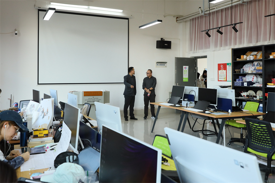 会上,学校双方就课程设置与就业发展等方面进行了更深入的学习交流。会后,百色学院美术与设计学院一行参观学了学校校园环境和各类专业工作室、实训室,充分了解学生上课和实践创作环境。(李斯玥/摄)