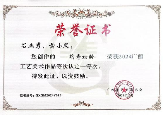 2024年作品《鹤寿松龄》入选2024广西艺术作品展览优秀作品一等次