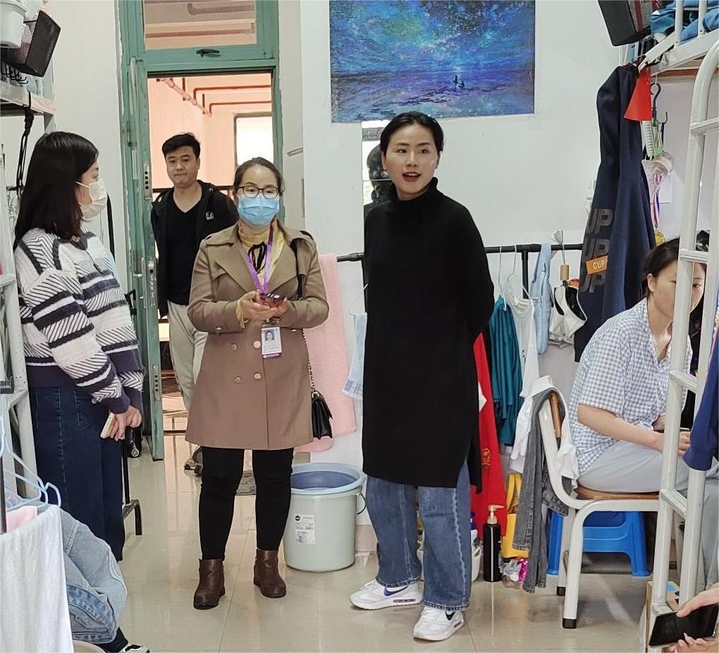 (学院领导检查寝室设施)