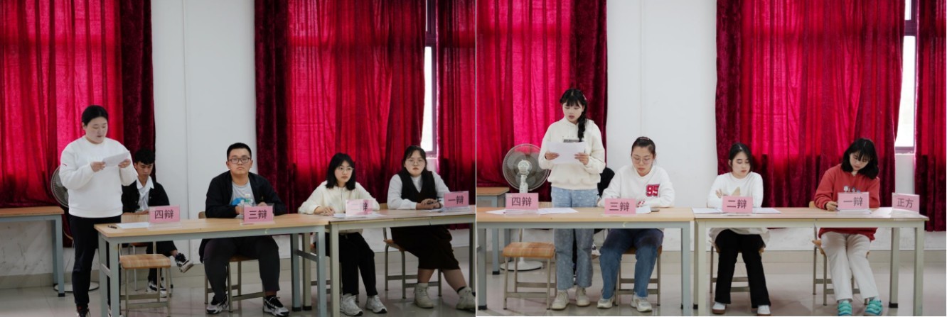 此次比赛分为立论质询、攻辩、 攻辩小结、自由辩论、总结陈词五个环节,共4组八支代表队伍参赛。