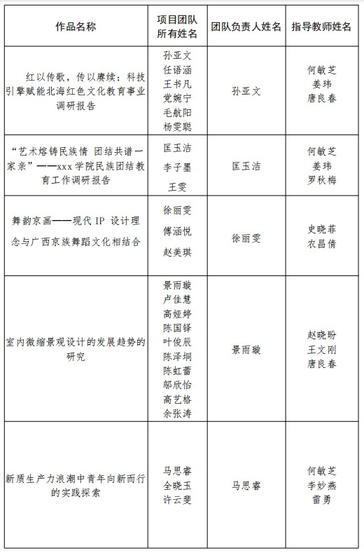 第十二届“挑战杯”广西大学生课外学术科技作品校级竞赛入选公示名单