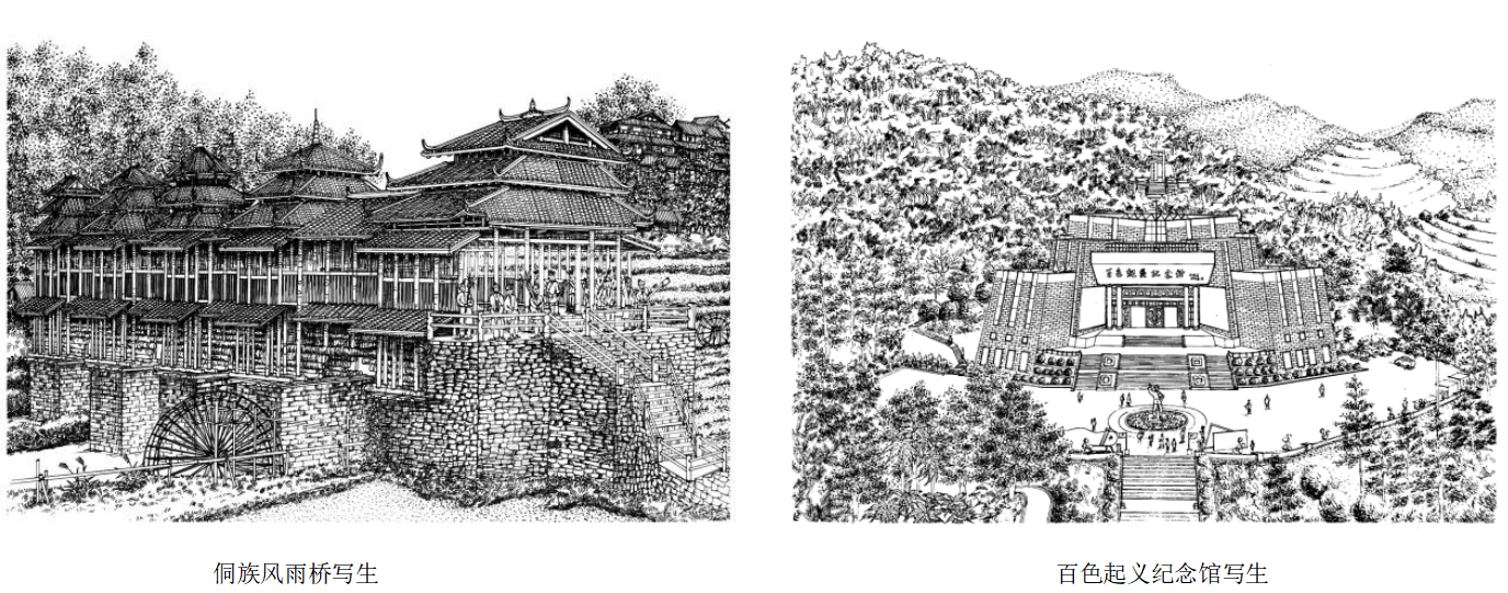 冰冻三尺非一日之寒,厚积薄发。写生是王文刚老师闲暇之余的乐趣,是记录生活的方式,是磨砺手绘表现技法和夯实基本功的常态。因此,他创作了大量环境艺术设计方面的手绘佳作。用实践提升技艺,以调研履行信念、提高思想觉悟。为了进一步提高思想认知、完善课程思政教学素材,更好的完成立德树人根本任务,对南宁、桂林、百色、涠洲岛等广西红色基地开展了深度调研,积累了大量素材。