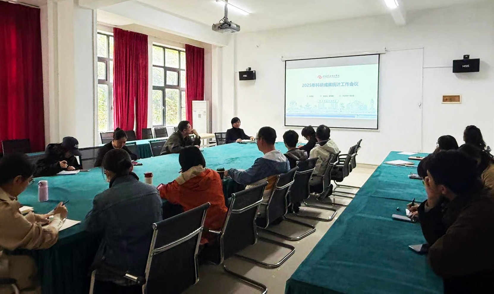 会上,科研处工作人员围绕统计核心事项展开详细解读:统计周期为 2025 年 1 月 1 日至 12 月 31 日,涵盖论文、作品、专著、专利、科研获奖、研究报告、学术交流等全品类学术成果;统计方式将分类推进,论文与作品需通过指定线上小程序填报,其余成果采用专项表格汇总;各单位需在 12 月 5 日前完成成果初审与汇总提交,年底前组织教师按科研业绩成果档案模板整理佐证材料,到科研处完成成果登记与档案建设,即便成果暂未见刊或缺少佐证材料,也需先行完成信息汇总。