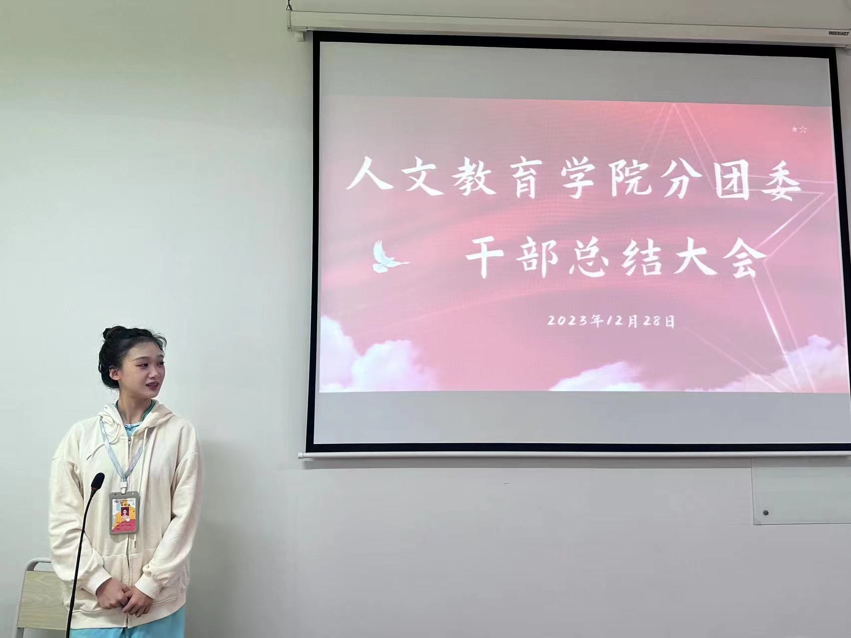 2023年1月3日, 2023-2024学年第一学期人文教育学院分团委总结大会在艺术楼311室召开。会议主要任务是总结本学期分团委工作和规划下学期分团委工作。分团委书记史晓菲老师及所有学生干部出席会议,会议由分团委干部赵美琪主持。