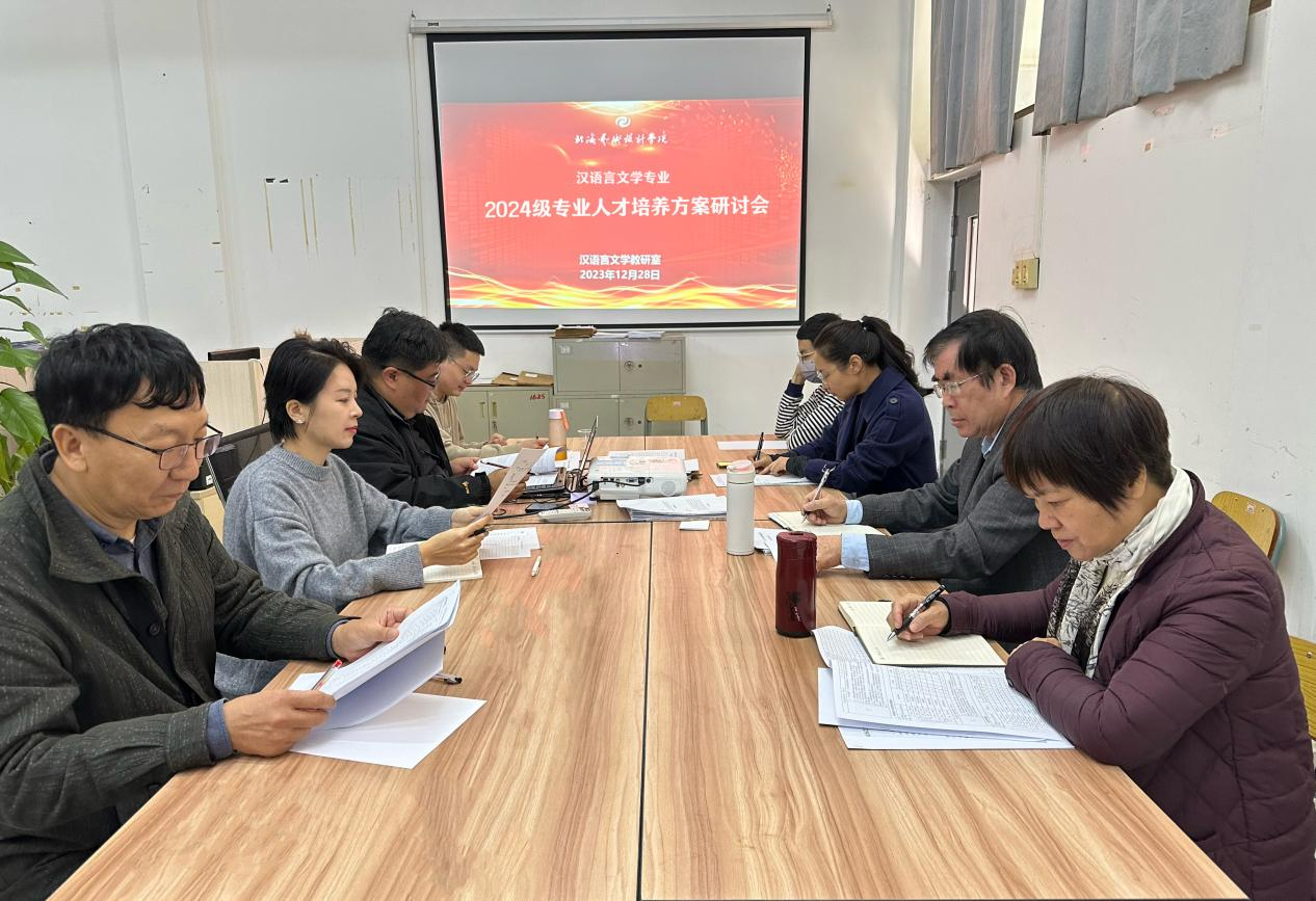 为积极落实学校应用型本科发展定位,进一步完善我院汉语言文学专业和汉语国际教育专业人才培养方案及课程体系建设,提升人才培养质量。1228日上午,我院在汉语言文学教研室召开汉语言文学、汉语国际教育专业2024级人才培养方案研讨会。《北部湾大学学报编辑部主任、执行主编黄昭艳教授受邀出席研讨会,我院副院长梁镨文、汉语言文学专业学科带头人黄宇鸿教授、汉语言文学教研室主任蔡森副教授、副主任姜玮副教授、汉语国际教育教研室副主任李梦涵老师、综合办郭建威老师参加会议会议由姜玮副主任主持。