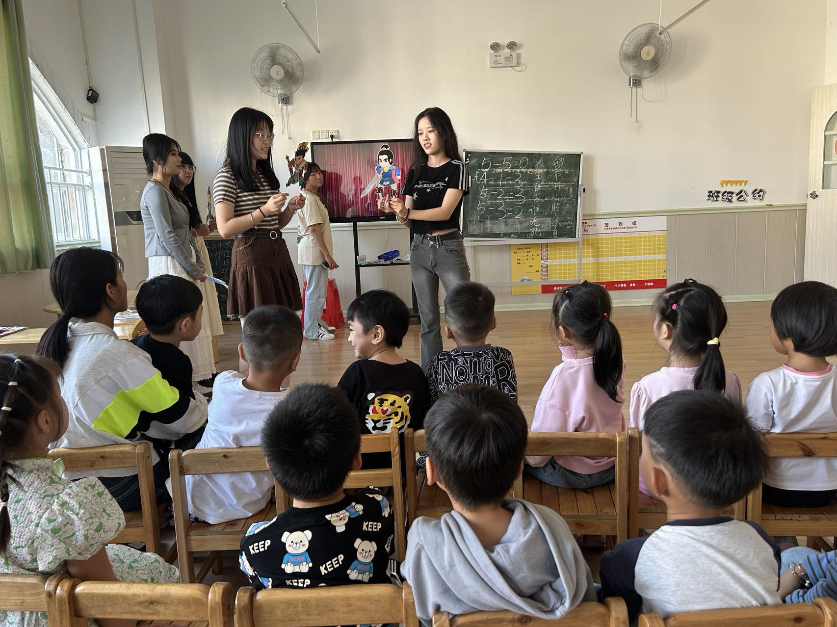 《创业启蒙》课程是汉语言文学专业学生的专业必修课程。2022级汉语言文学专业全体学生从专业实践与市场发展趋势出发,从国学传统文化中寻找题材并进行读本创作。全体学生共分16个小组,经指导老师指导,对启蒙读本几经修改,最终形成16个文学文本。为适应幼儿园学生的阅读相关与信息接收能力,汉语言文学学生还对自身文本进行适应性舞台改编,最终在幼儿园展示上呈现呈现话剧表演、故事朗诵、视频展示等多种展演形式。