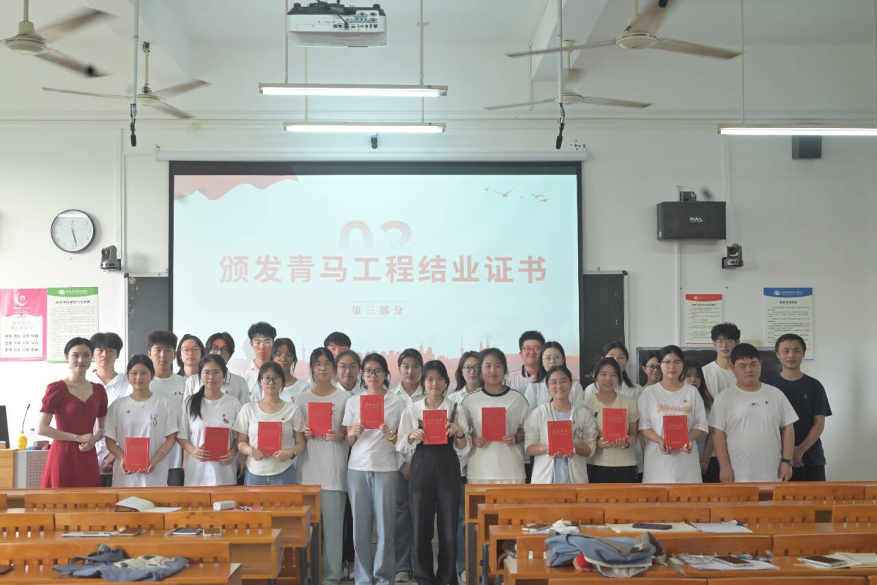 本次“青马工程”系列活动将理论学习与实践淬炼有机结合,通过沉浸式教学、实践调研等多元形式,引导青年学子深化对马克思主义理论的理解。结业仪式上,师生共同回顾了项目开展以来的学习历程,展现了学员在理想信念、责任担当等方面的成长蜕变。