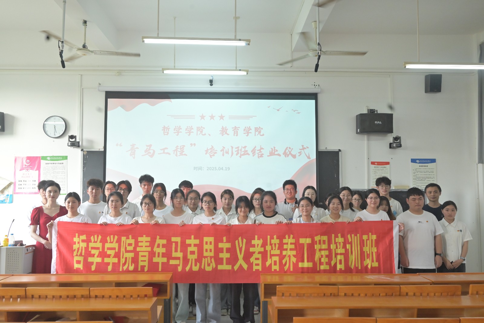 2025年4月19日,我校教育学院、哲学学院于东区觉悟楼 402 室举办的第一期青年马克思主义者培养工程结业仪式圆满落幕。哲学学院党支部书记谢伟、教育学院团总支指导教师陈美霖出席结业仪式,两学院团员及学生干部共同参加活动。