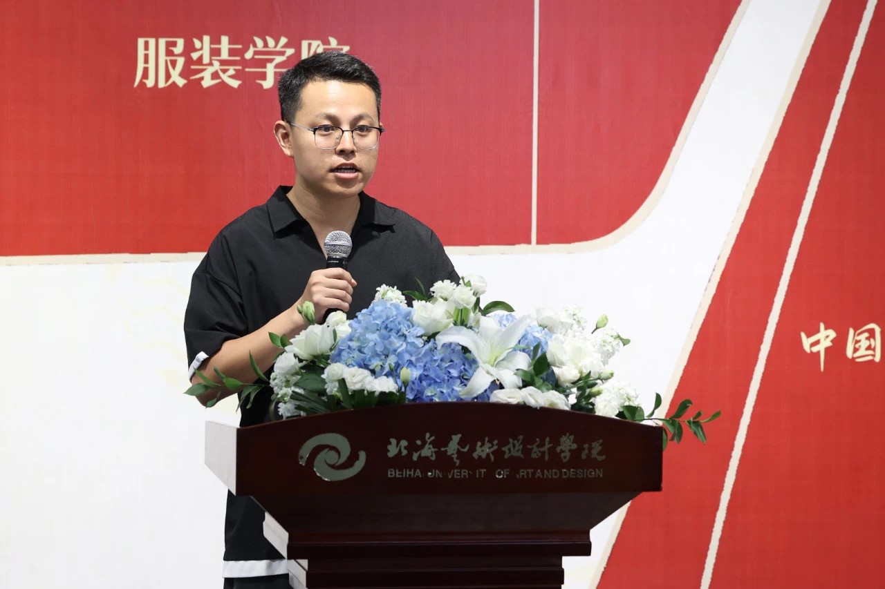 学生代表王路凯分享了他在制作明代汉服过程中的感悟与收获,他表示在传统制衣工艺的实践中,感受到了传统服装的魅力和古人的制衣智慧,加深了对传统服饰文化的深刻理解和现代设计元素巧妙融合的了解。