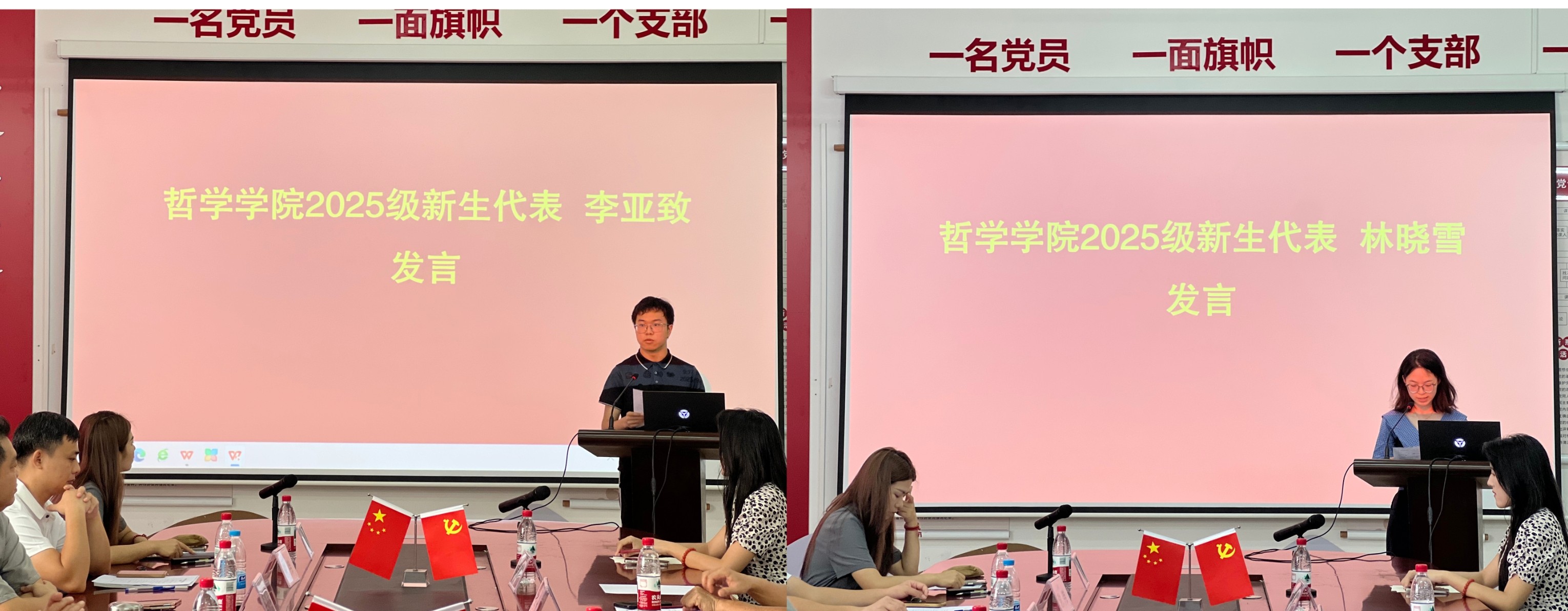 新生代表李亚致同学和林晓雪同学都分享自己初入大学校园的感受,他们表示从师长的热情与温暖中感受到哲学学院浓厚的人文关怀,对未来求学之路充满信心和期待。