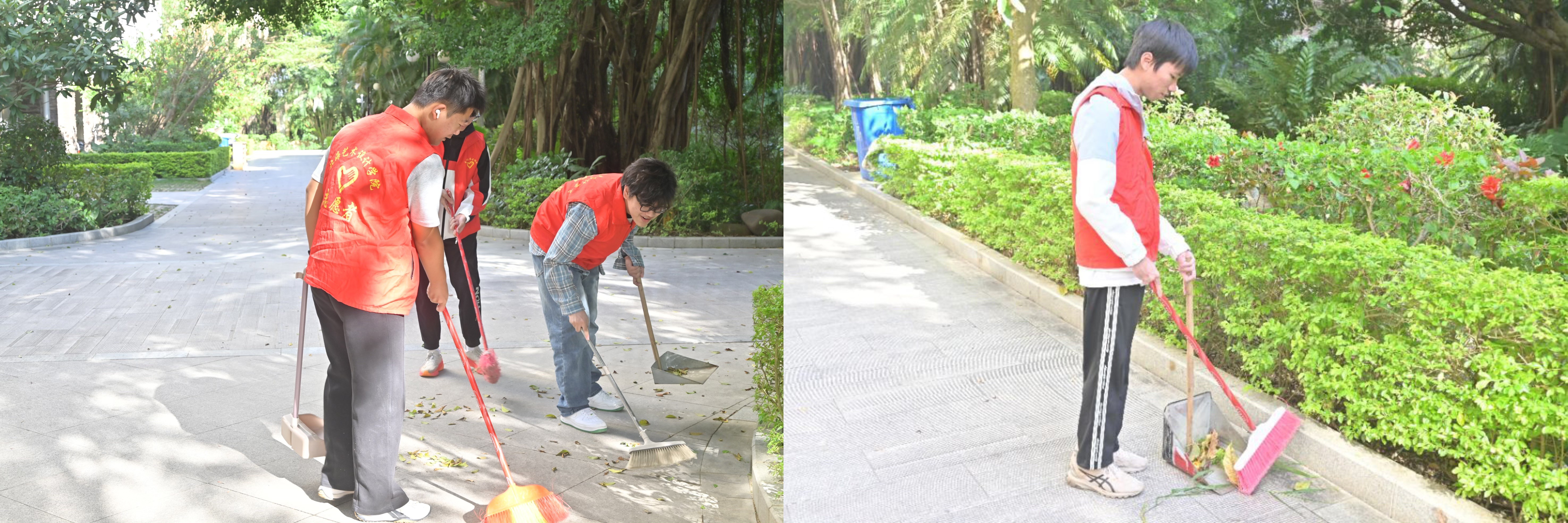 活动伊始,志愿者们分工明确、干劲十足。一组手持工具清扫社区主干道、广场及绿化带,细致清理垃圾与落叶,不怕脏累,带动居民主动加入;另一组两人结伴分发环保宣传手册,普及垃圾分类等知识,呼吁居民从自身做起践行低碳生活,共同守护社区生态。