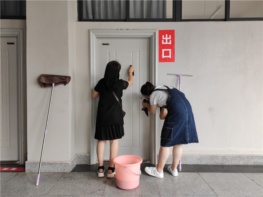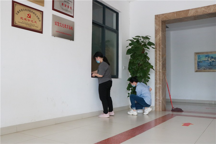 5月1日至2日,学校统筹安排各部门对照疫情防控卫生标准,对东西校区的教学楼、办公楼、宿舍区、图书馆、实训室、工作室、食堂、绿化区等公共区域开展卫生死角清洁工作,并对照防控要求规范教室桌椅摆放及室内防疫标识的张贴。经过全校教职工两天的努力,门窗、风扇、墙面、栏杆、地面擦拖干净,布置美观,物品摆放整齐,校园环境整洁一新。