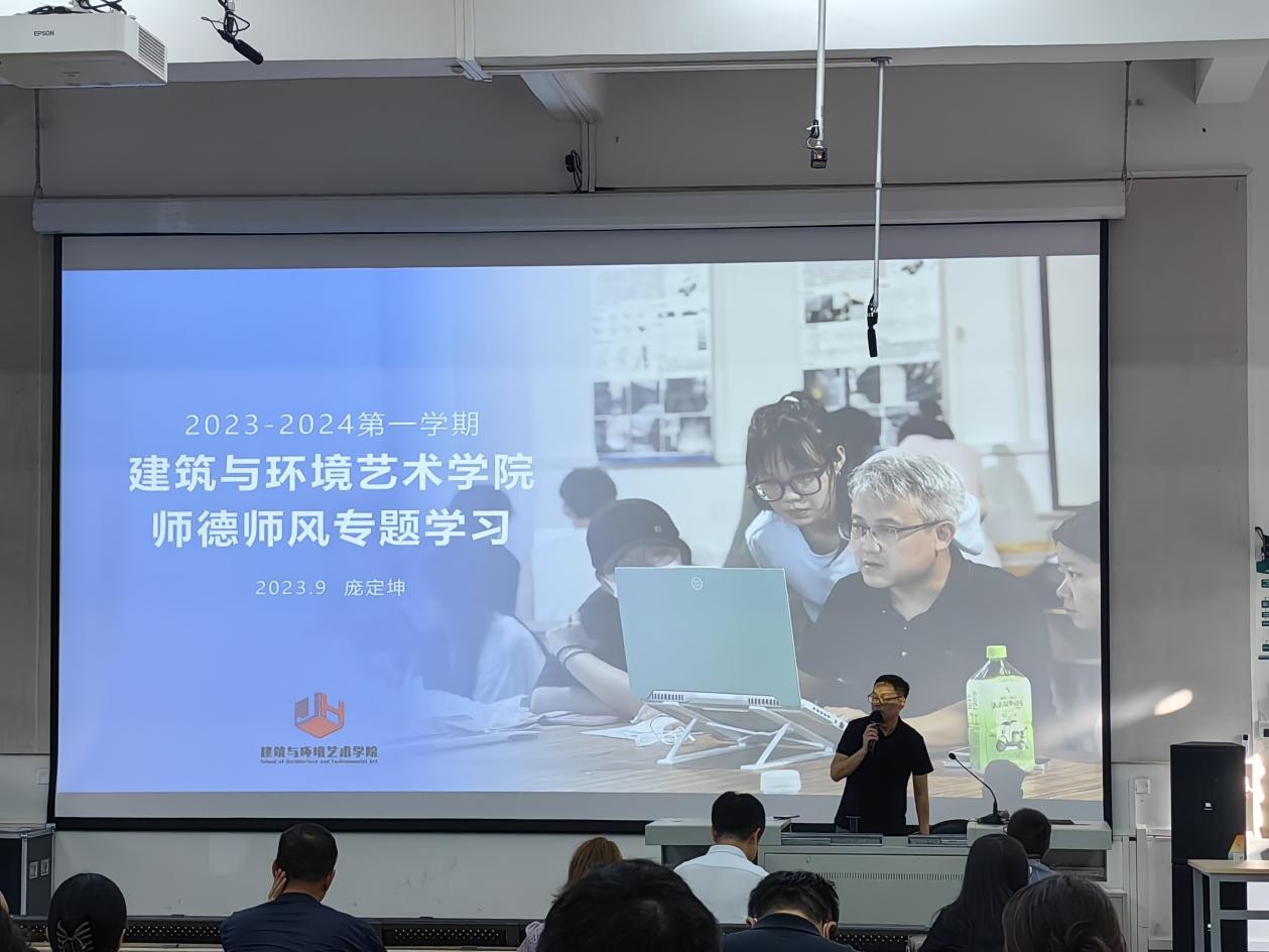 2023年09月20日,在公德楼107召开建筑与环境艺术学院全体教职工师德师风专题学习会议,会议由建环学院书记庞定坤主讲,学院全体教职工共同聆听学习此次会议。