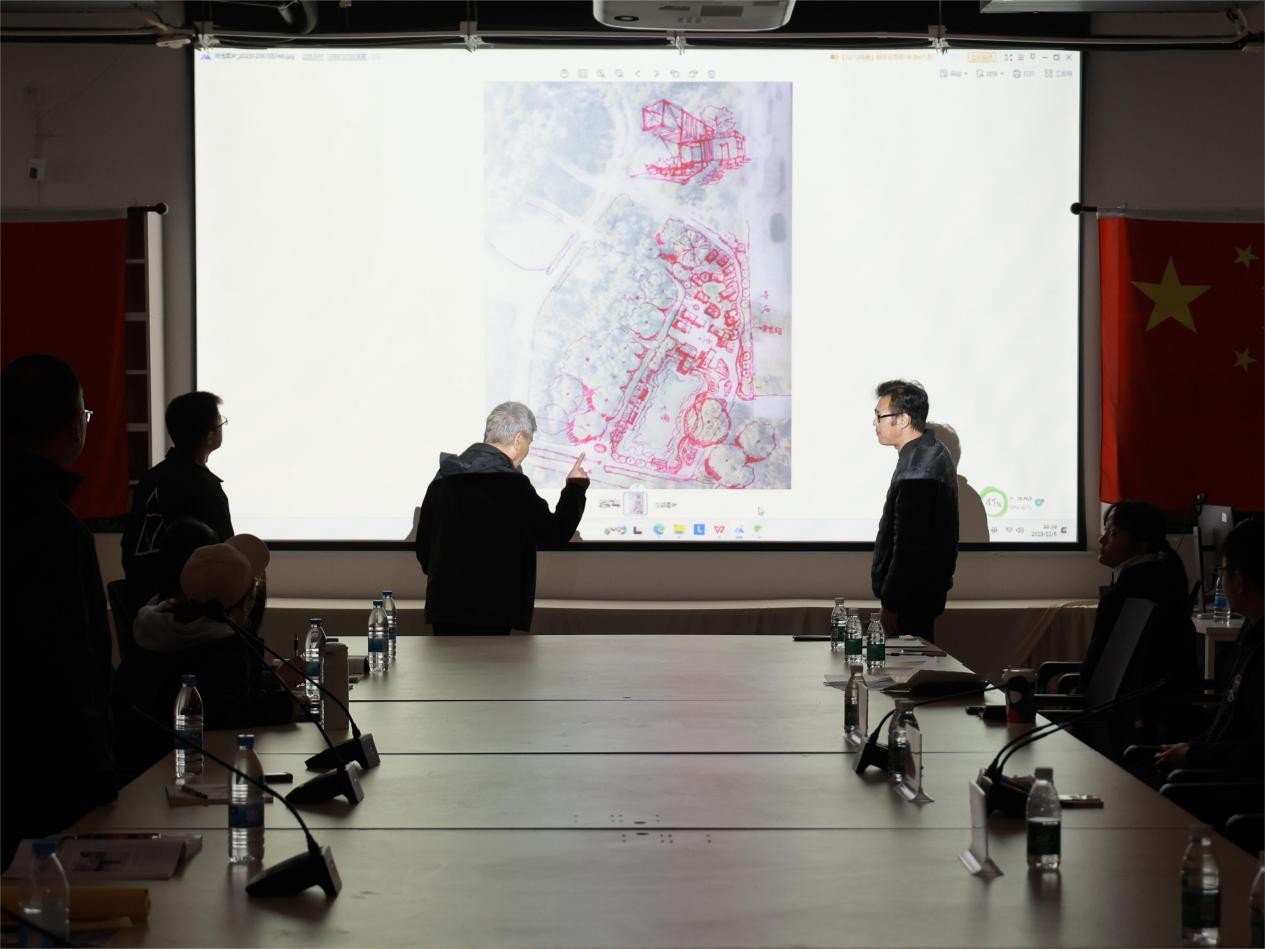 农昌倩高级工程师代表风景园林团队汇报了北海丝路文化园区(一期)景观设计方案项目,并与陆志成教授和王院长进行了产学研的深入交流。在此过程中,陆志成教授和王院长对该项目提出了指导性建议。(魏鹂萱/摄)