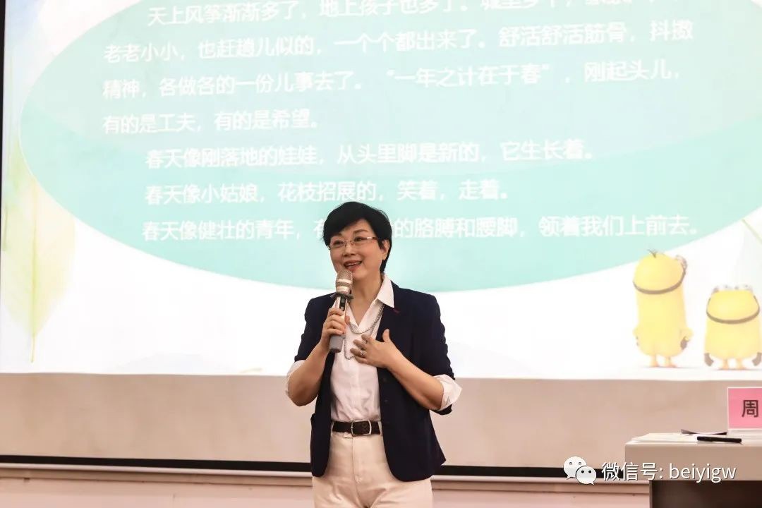 紧接着,周游教授以朱自清的《春》为例,给同学们播放了孙小梅和康辉朗诵的片段,并现场邀请六位同学上台朗诵并做出点评,她表示:“因为地域的不同,每位同学所感受到的春不一样,情也就不一样,我们的体会与动情是最重要的”。希望大家能热爱生活,从日常生活中能发现美,体会情。