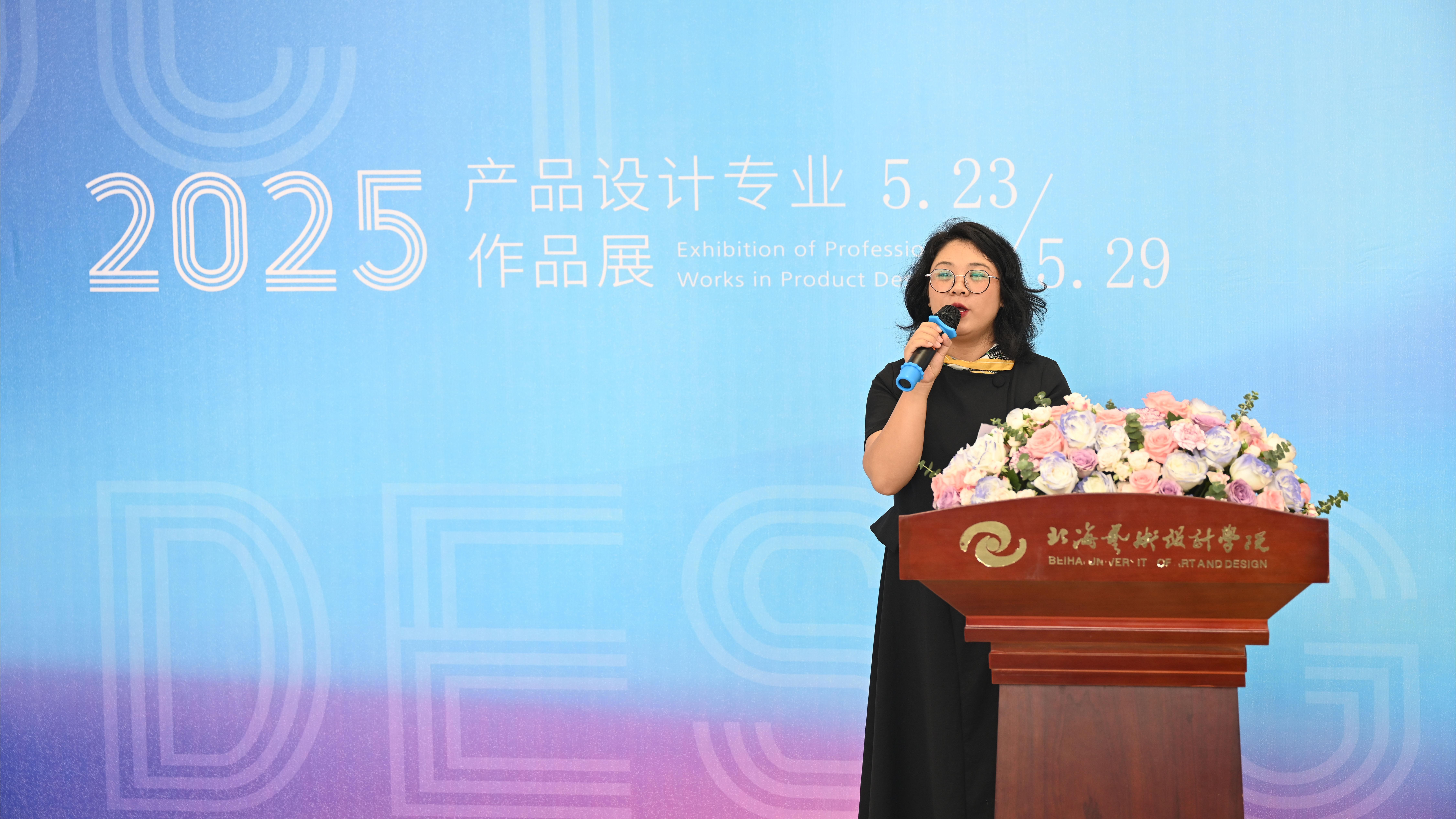 教师代表卢雯芝老师在发言中深情回顾了教学过程中的点滴。她提到,在交互设计、产品创新设计等课程中,学生们大胆拥抱新技术,将用户需求与创新理念相结合,设计出富有时代感的作品而在贝雕、赤江陶等传统工艺课程中,学生们通过非遗工坊的实践,不仅掌握了精湛的技艺,更深刻体会到匠人精神的真谛