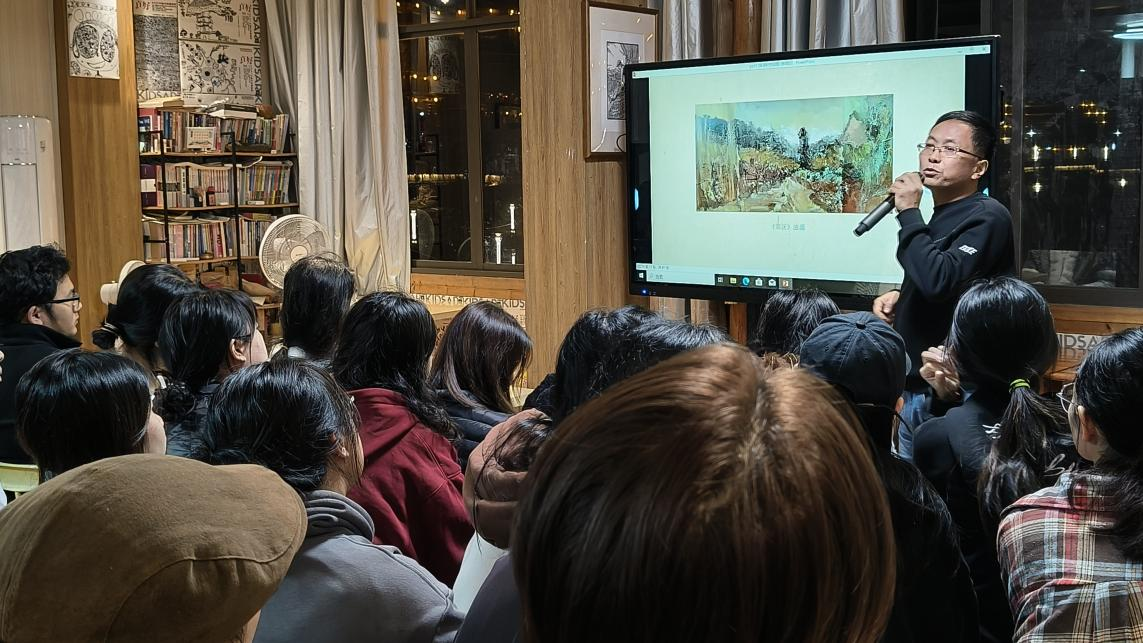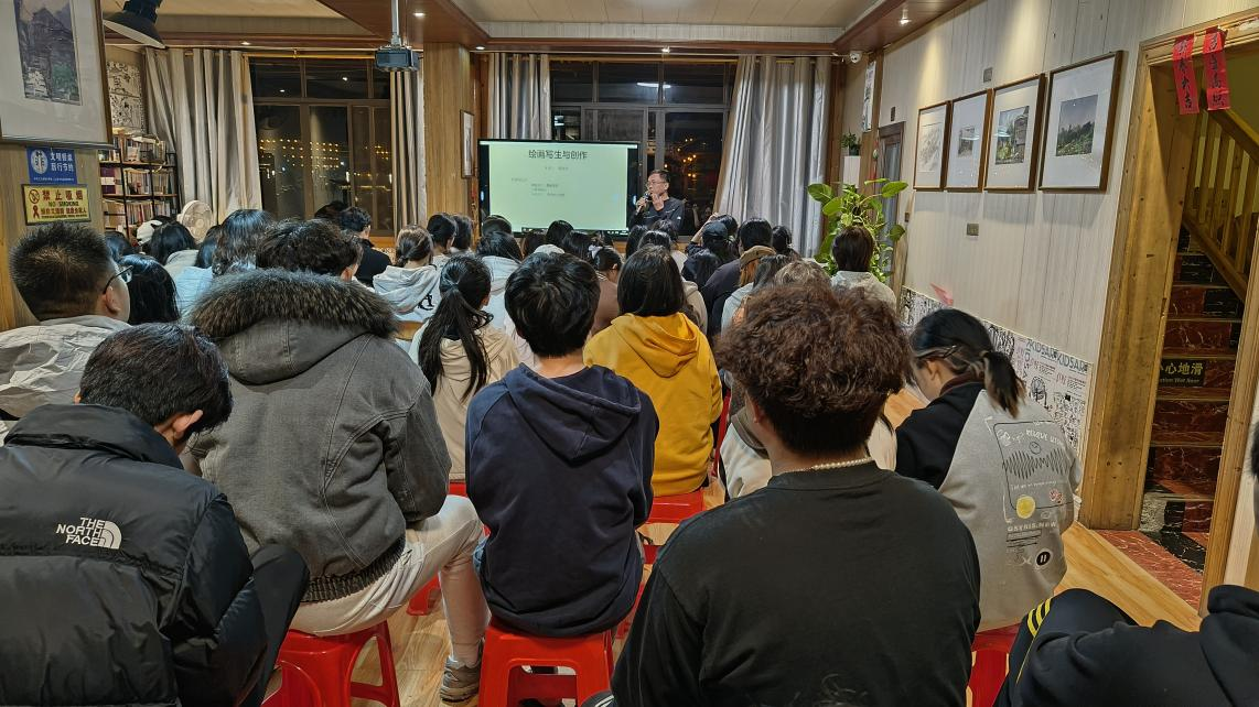2025年113日晚7点,陈政军教授于三江侗族程阳八寨写生实验基地24级美术学、绘画专业学子带来水彩与油画写生创作经验分享讲座。