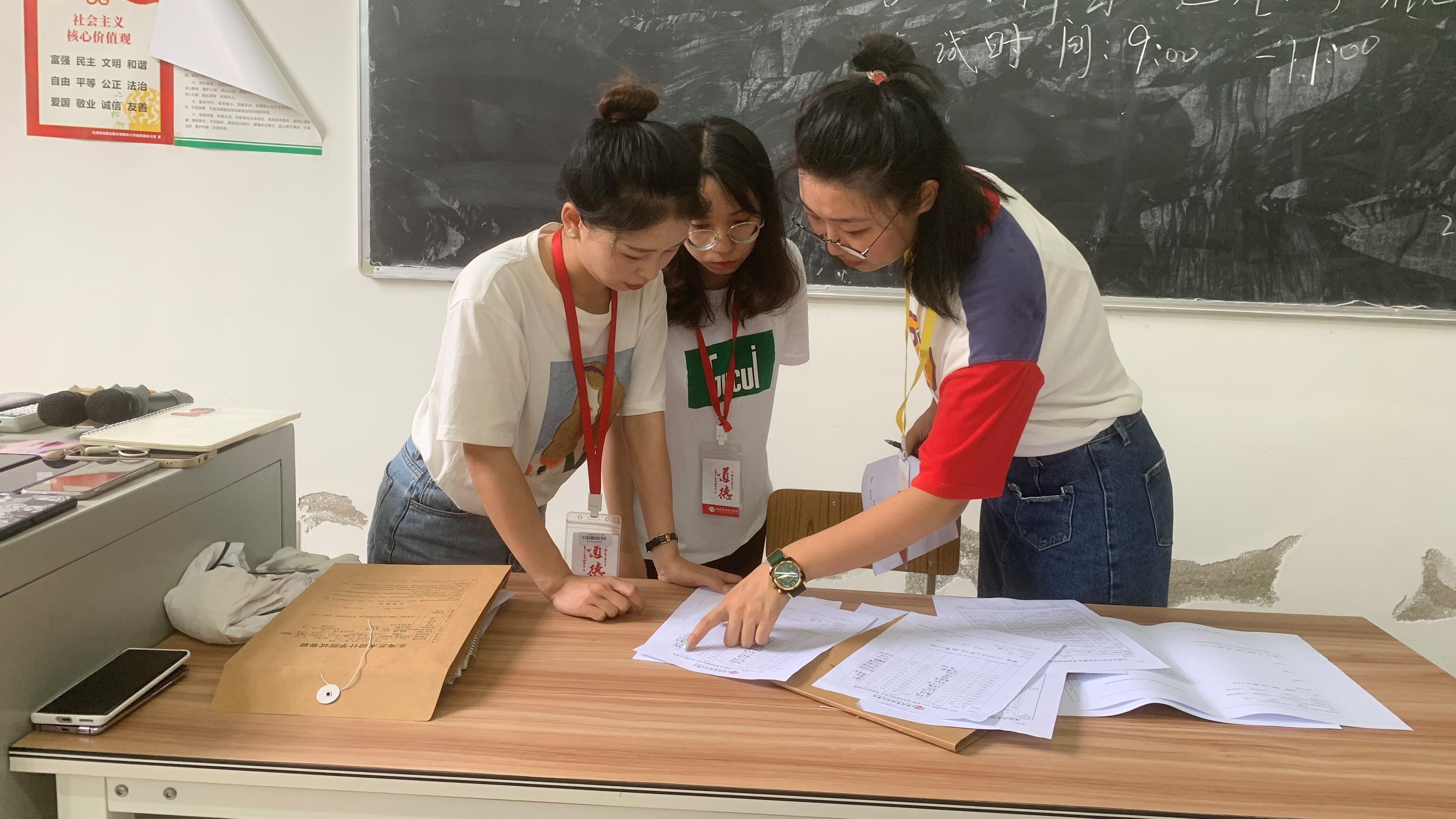 根据学校教学工作统一安排,美术学院于6月9日至6月12日开展本学期专业课程期末考试。期间,北海艺术设计学院副校长胡胜,教学质量监控办公室副主任郑岩,美术学院党总支书记韩玮,美术学院副院长龚为,综合办主任肖玺,综合办副主任陈建江,绘画专业负责人张湘中,雕塑专业负责人金凯婧,摄影专业负责人李炫勋,在考试中往返于功德楼、伦理楼各考场,进行美术学院专业课程期末考试巡察工作,并与考务人员进行深入交流,对考场布置与秩序维护等有关工作进行指导。(肖玺 摄)