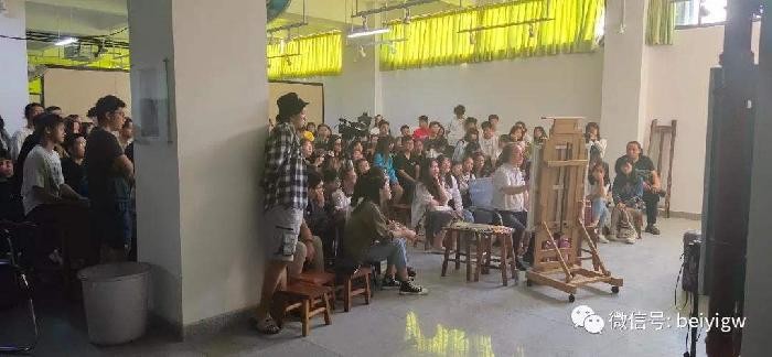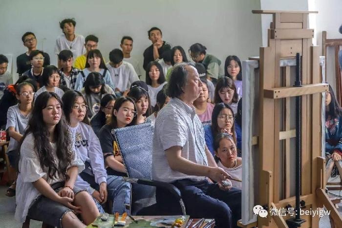 2019年10月19号上午8时,曲湘建教授莅临美术学院教学区,为美术学院同学上了一堂精彩的油画人物现场写生示范课。