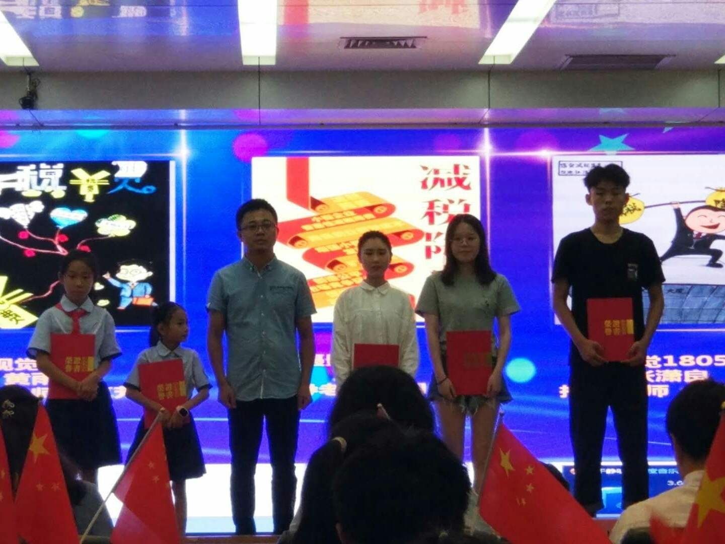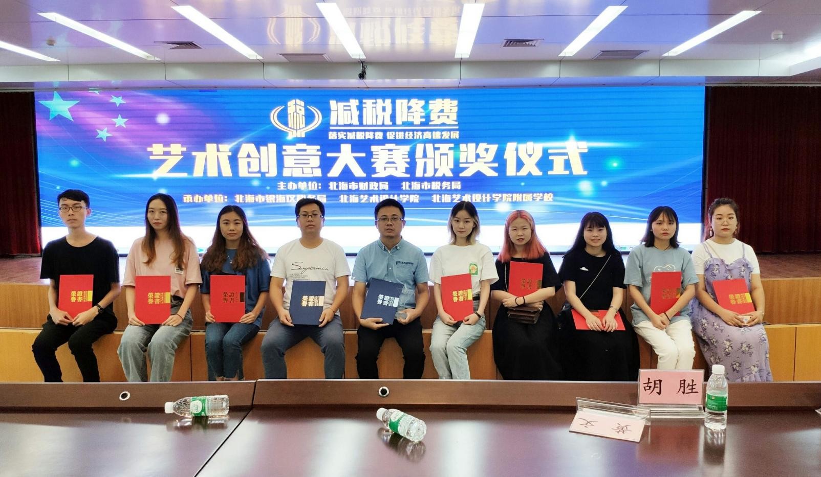 5月20日上午九点整,我校参加由北海市税务局举办的“减税降费”艺术创意作品大赛颁奖典礼在北海市税务局大厅举行。本次创意大赛美术学院成绩喜人,共荣获一等奖一名,二等奖一名,三等奖二名,优秀奖5名,优秀指导老师奖一名的优异成绩。本次大赛颁奖典礼是由北海市税务局承办,优异的成绩极大的促进了我院学生的自信心和“知识与社会建设接轨”的先进教学理念。本次大赛美术学院常务龚为教授受邀参加颁奖典礼,并为获奖学生与教师颁奖。(王云龙 摄)